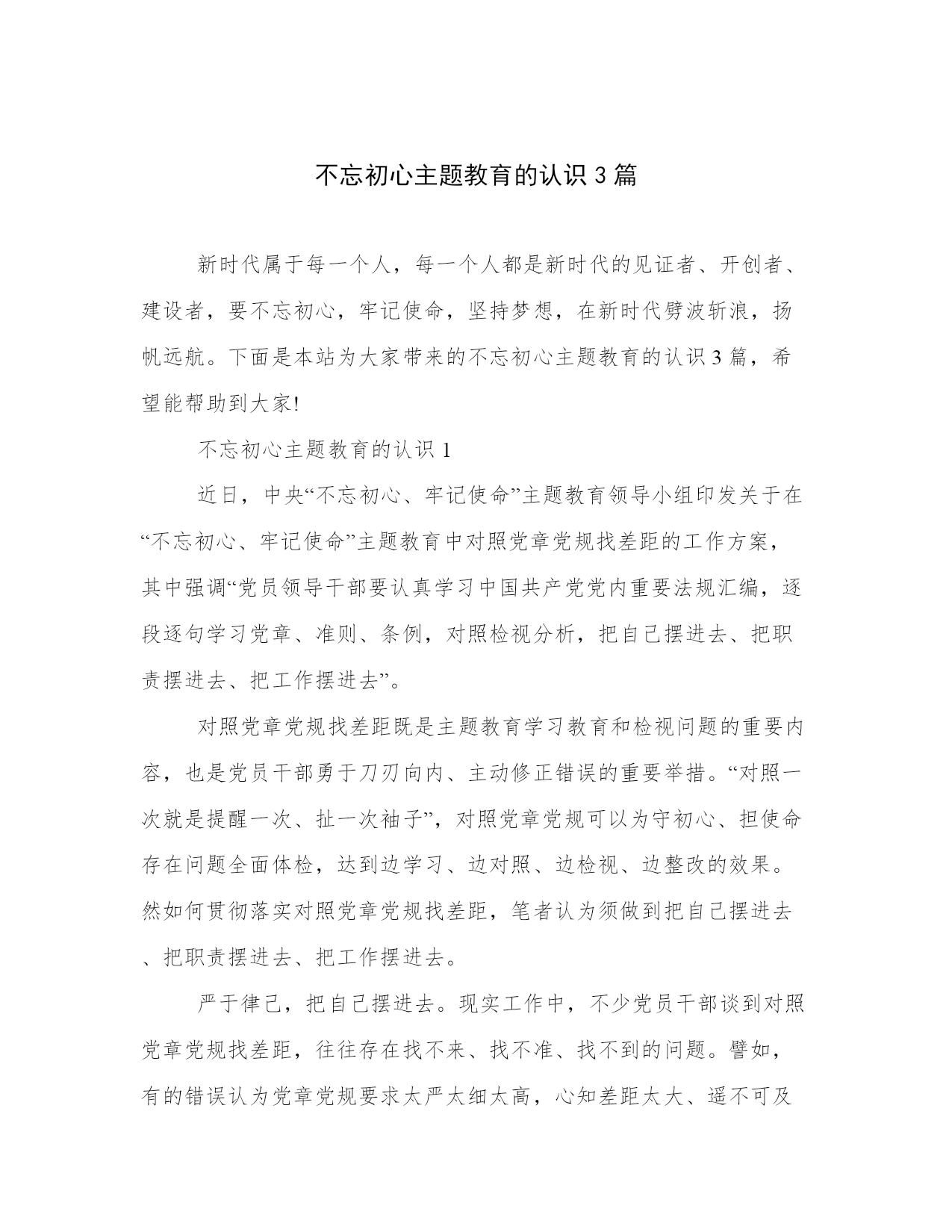 不忘初心主题教育的认识3篇