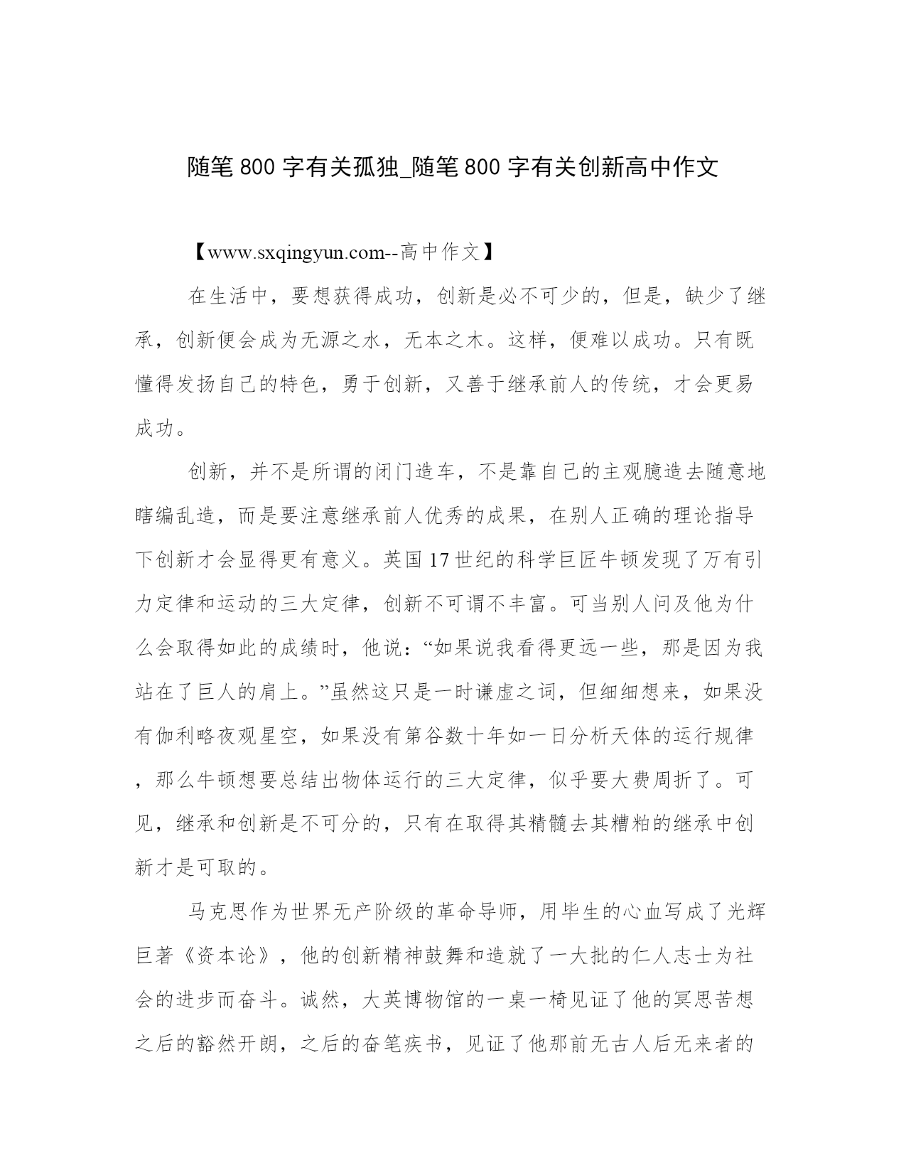 随笔800字有关孤独_随笔800字有关创新高中作文