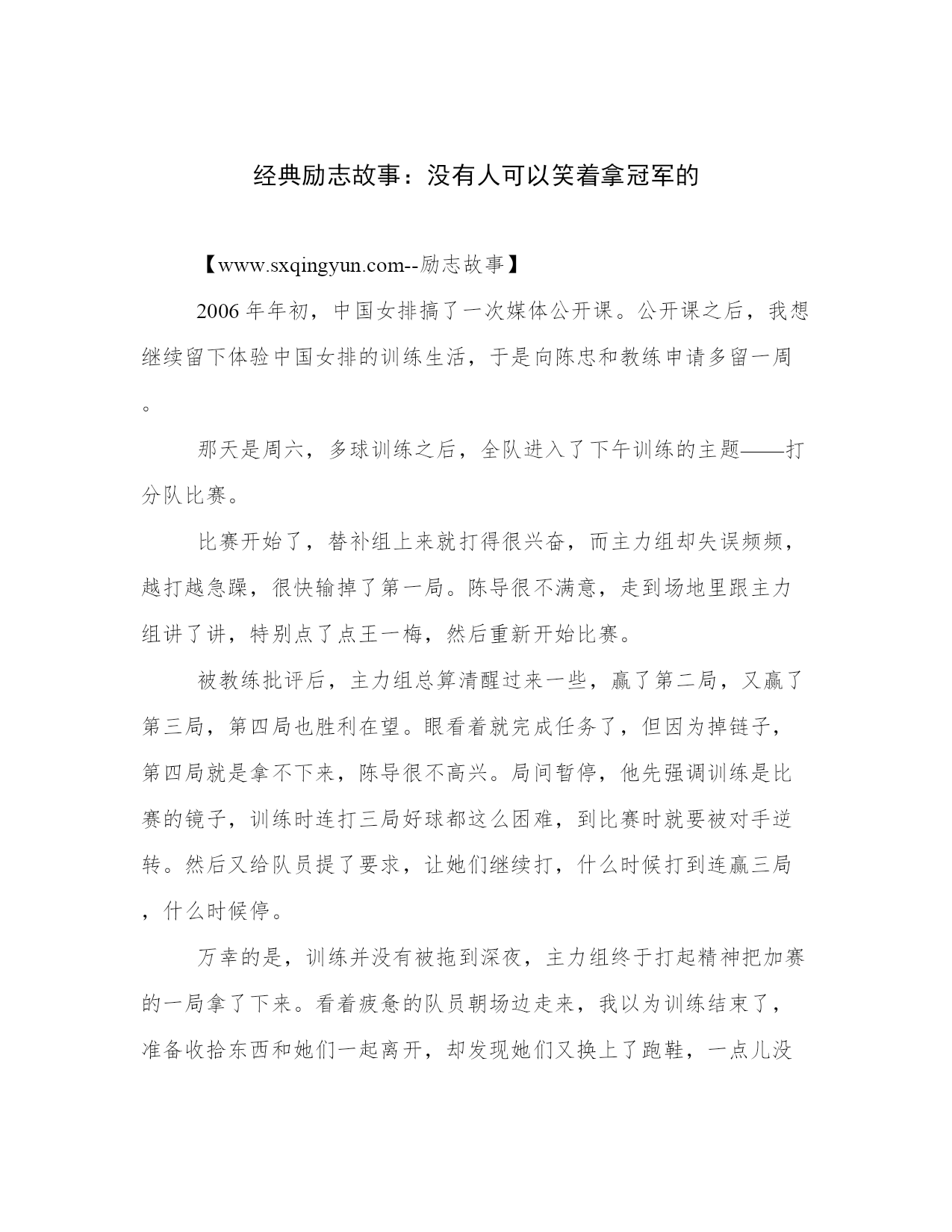 经典励志故事:没有人可以笑着拿冠军的