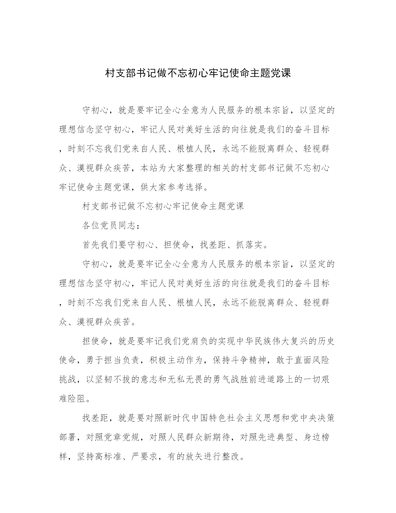 村支部书记做不忘初心牢记使命主题党课