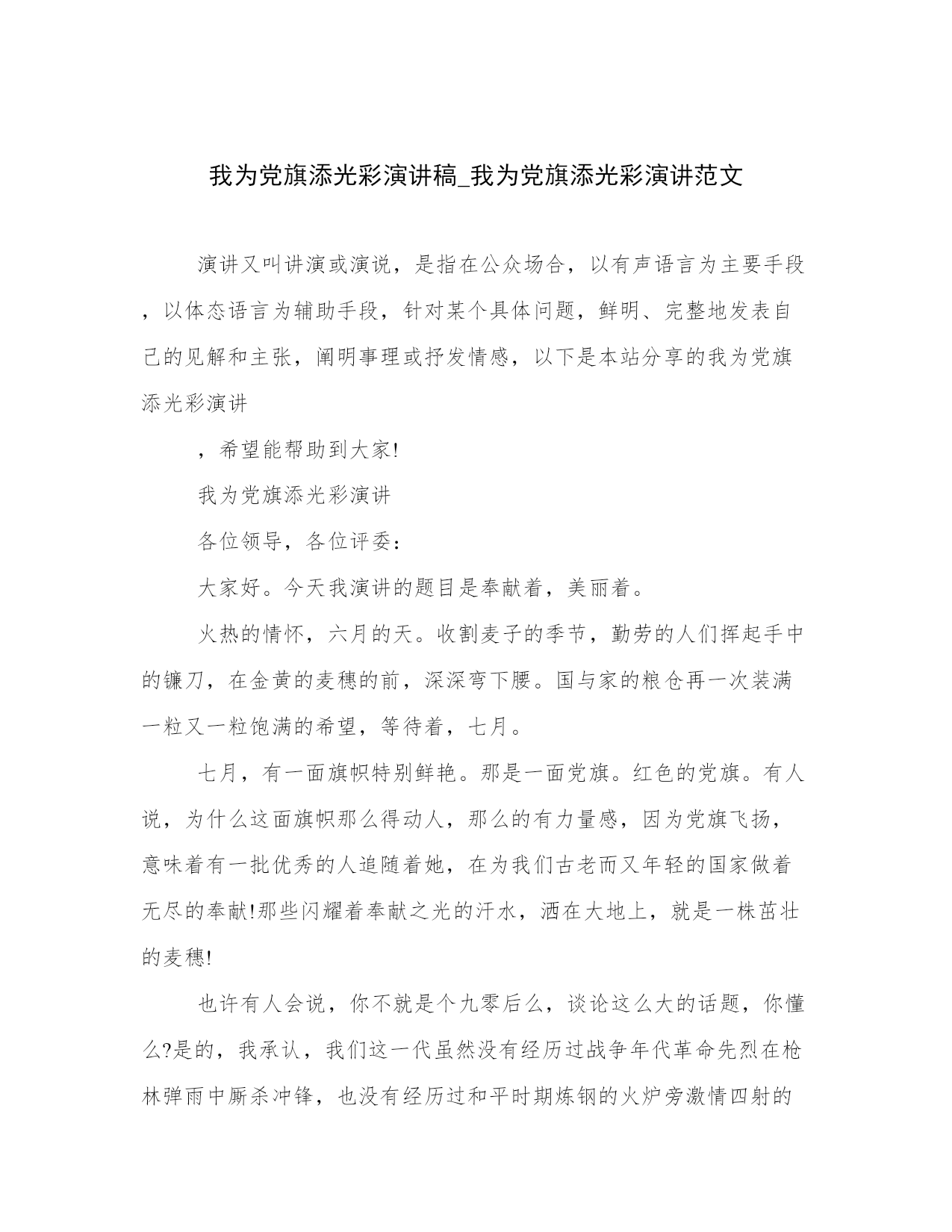 我为党旗添光彩演讲稿_我为党旗添光彩演讲范文