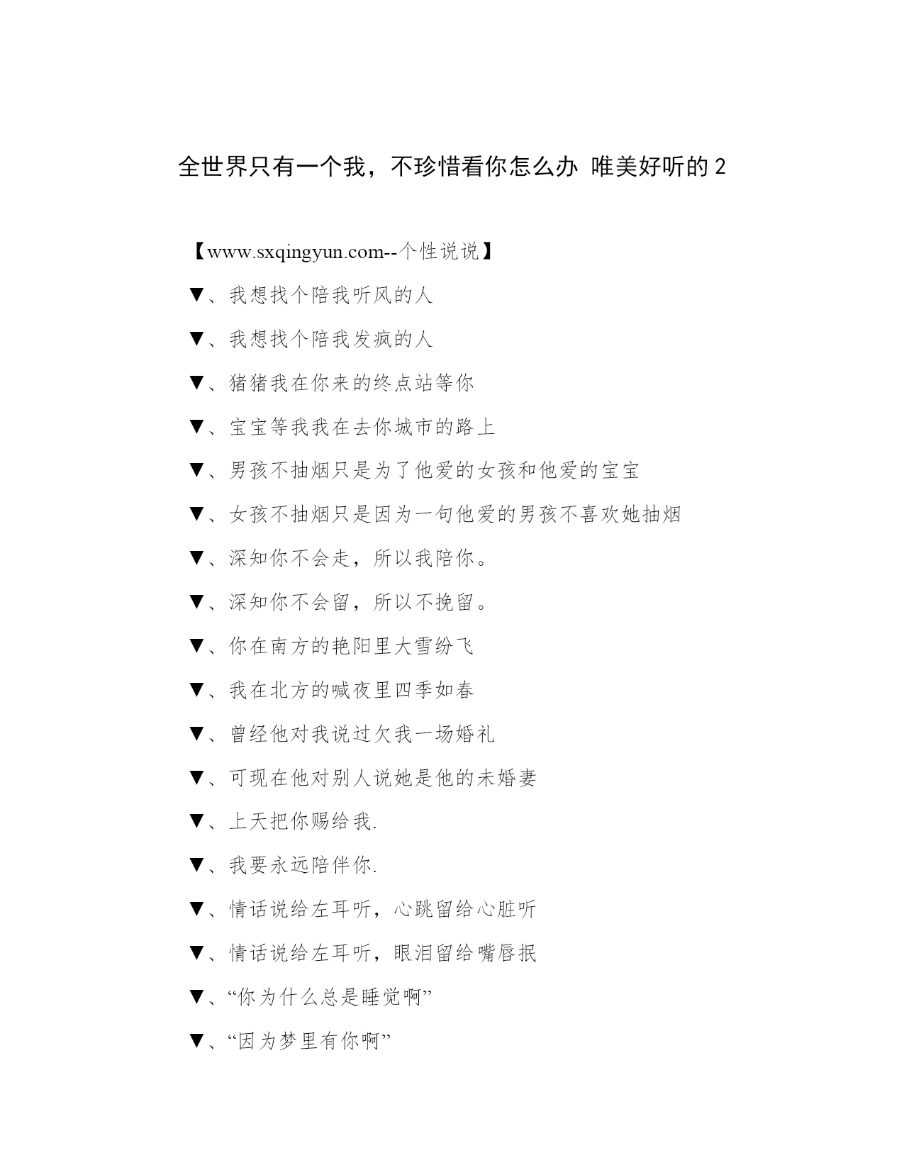 全世界只有一个我,不珍惜看你怎么办 唯美好听的2
