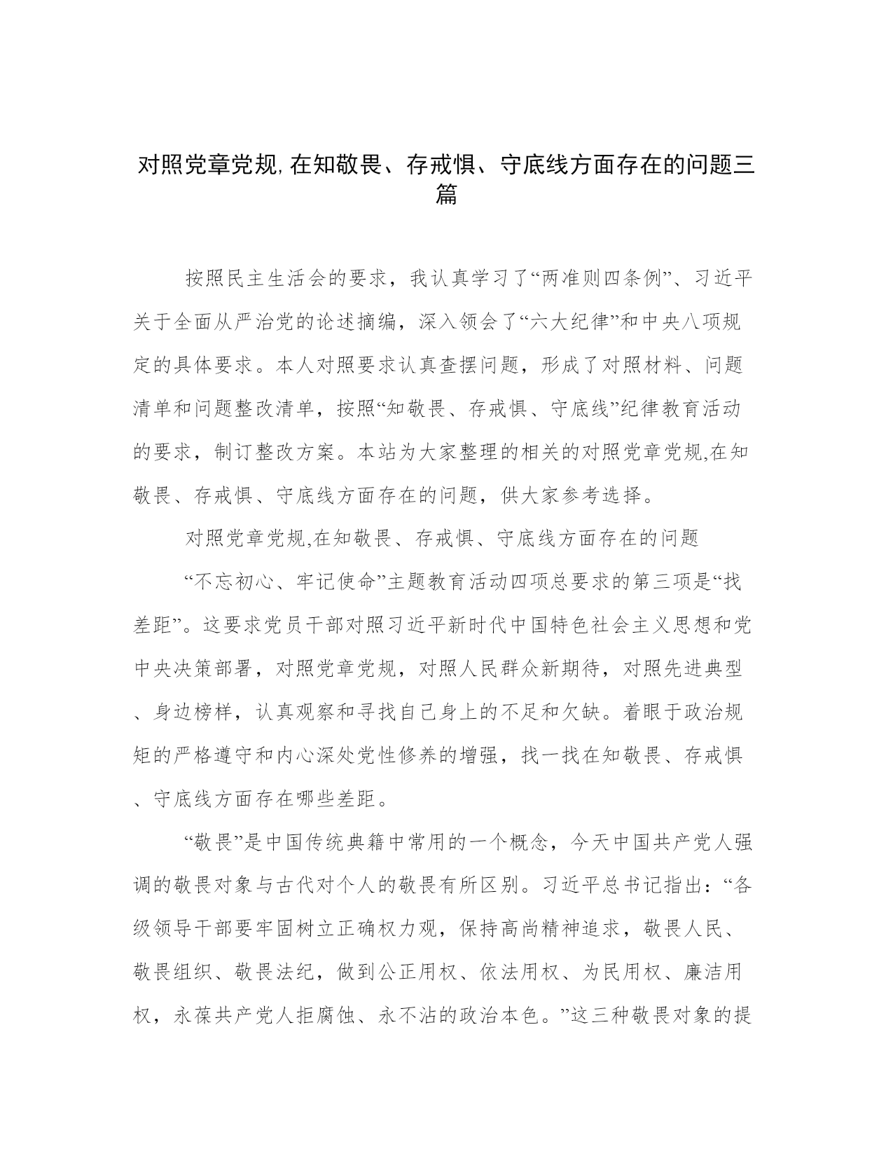 对照党章党规,在知敬畏、存戒惧、守底线方面存在的问题三篇
