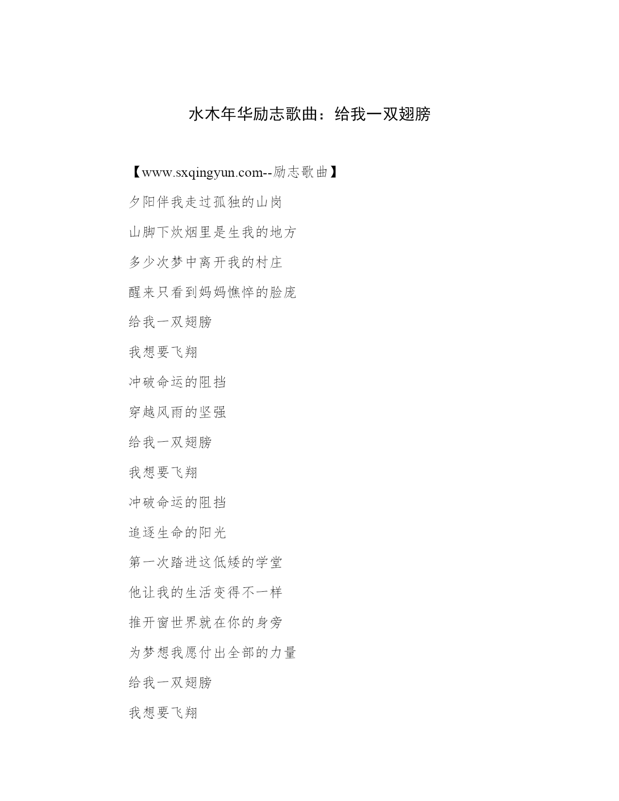 水木年华励志歌曲:给我一双翅膀