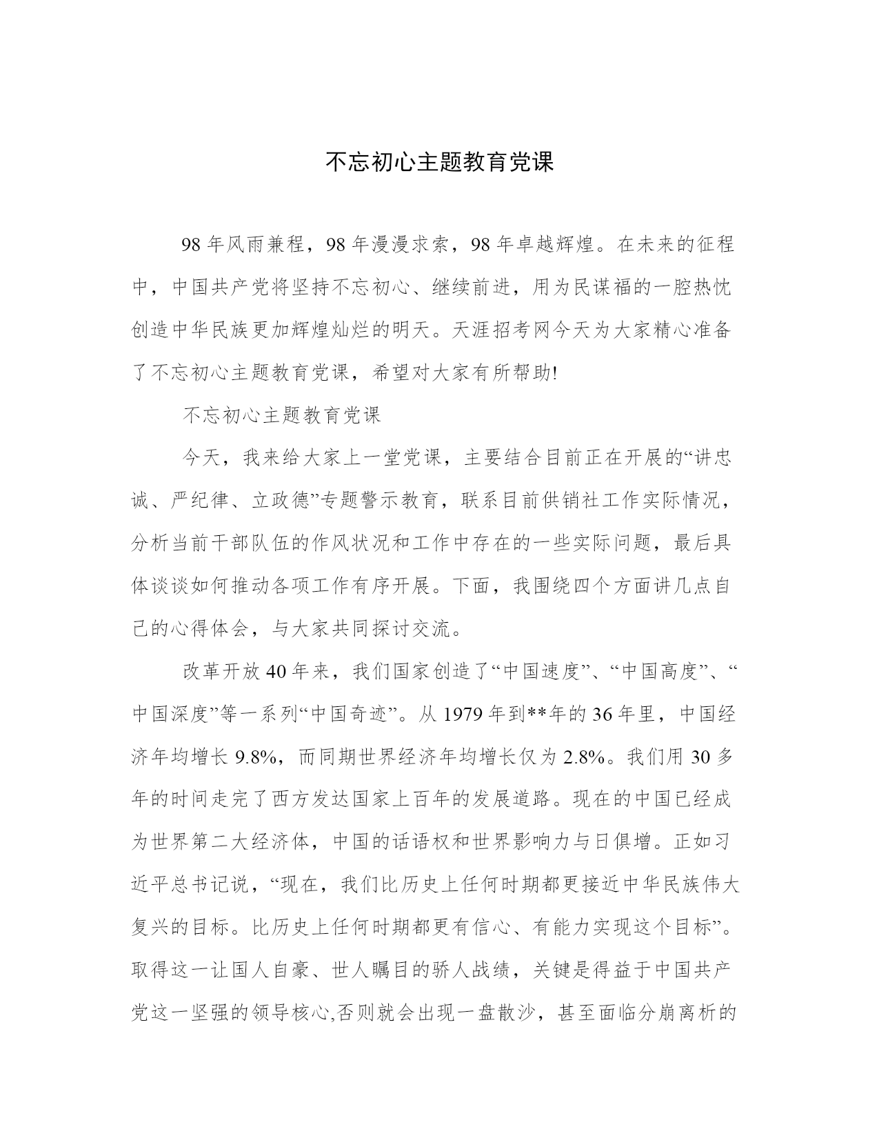 不忘初心主题教育党课