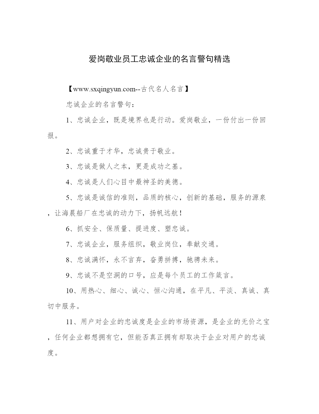 爱岗敬业员工忠诚企业的名言警句精选