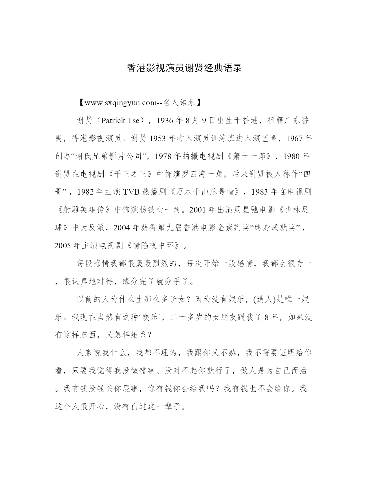 香港影视演员谢贤经典语录