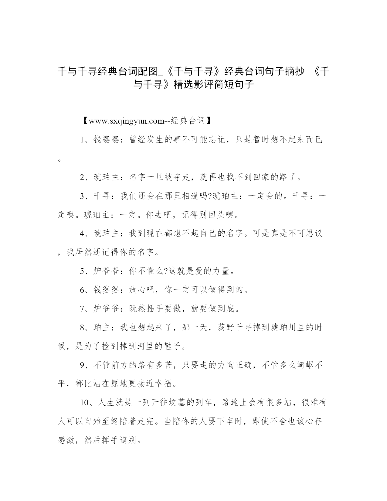 千与千寻经典台词配图_《千与千寻》经典台词句子摘抄 《千与千寻》精选影评简短句子