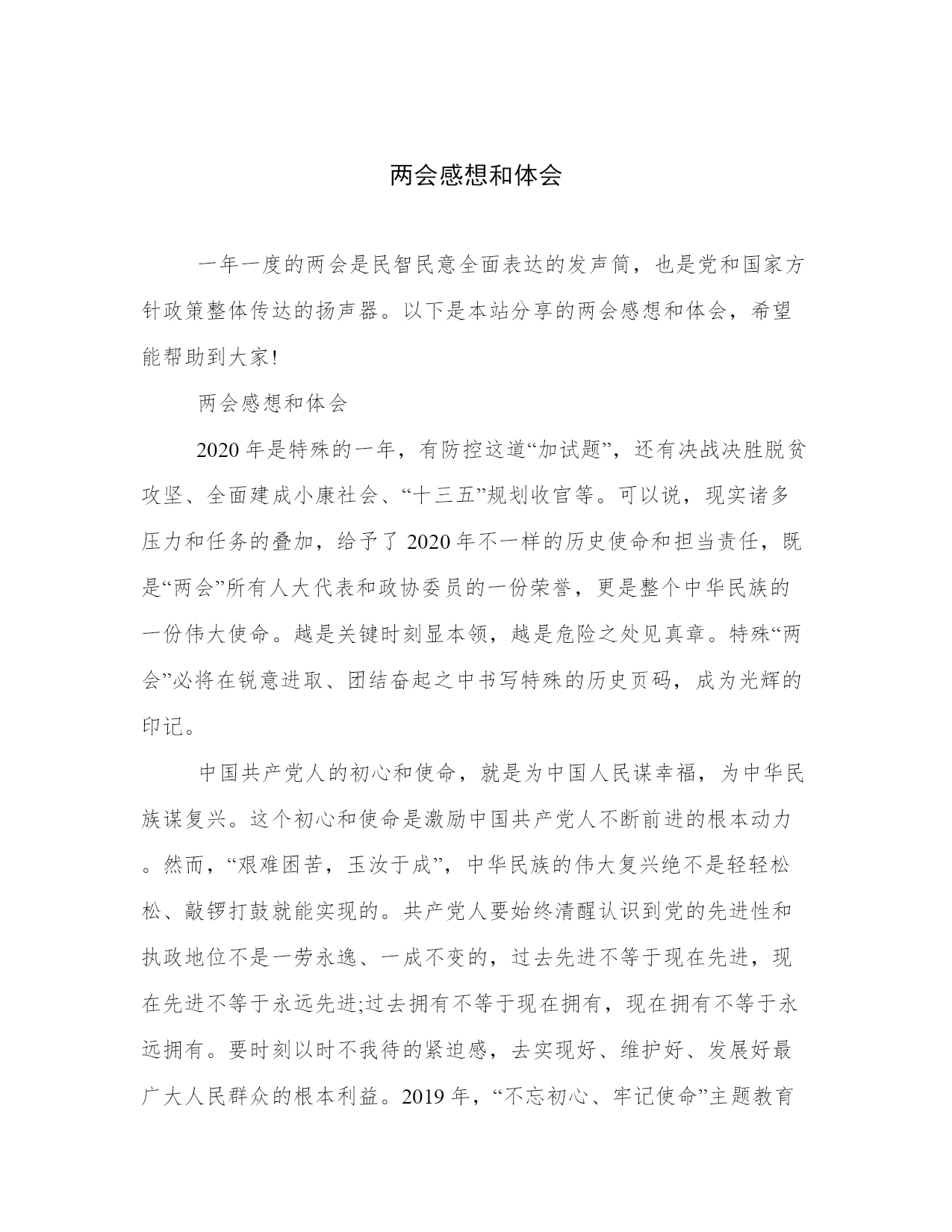 两会感想和体会