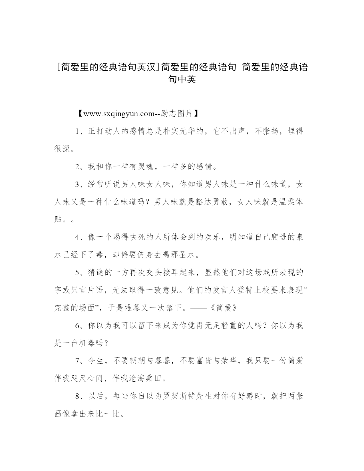 [简爱里的经典语句英汉]简爱里的经典语句 简爱里的经典语句中英