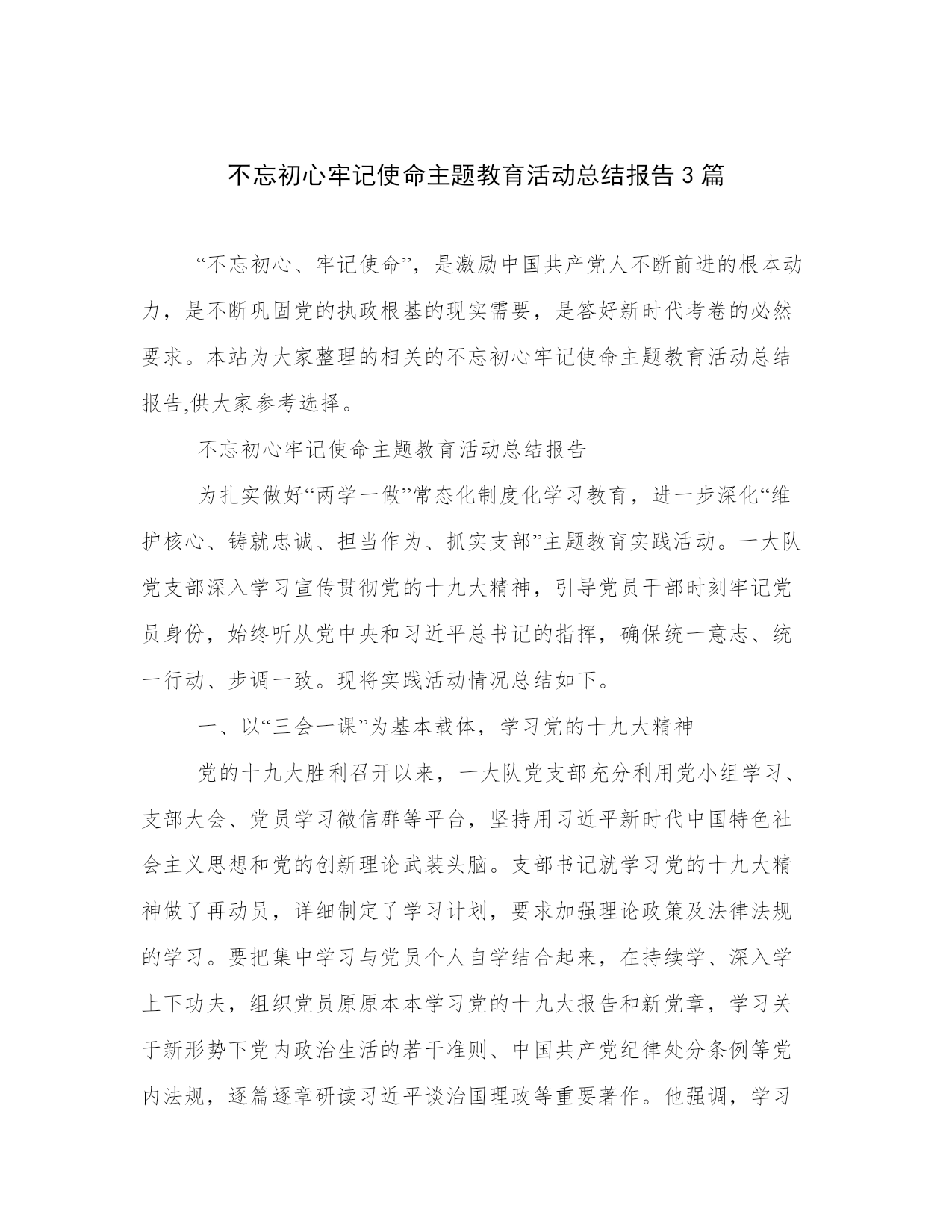 不忘初心牢记使命主题教育活动总结报告3篇