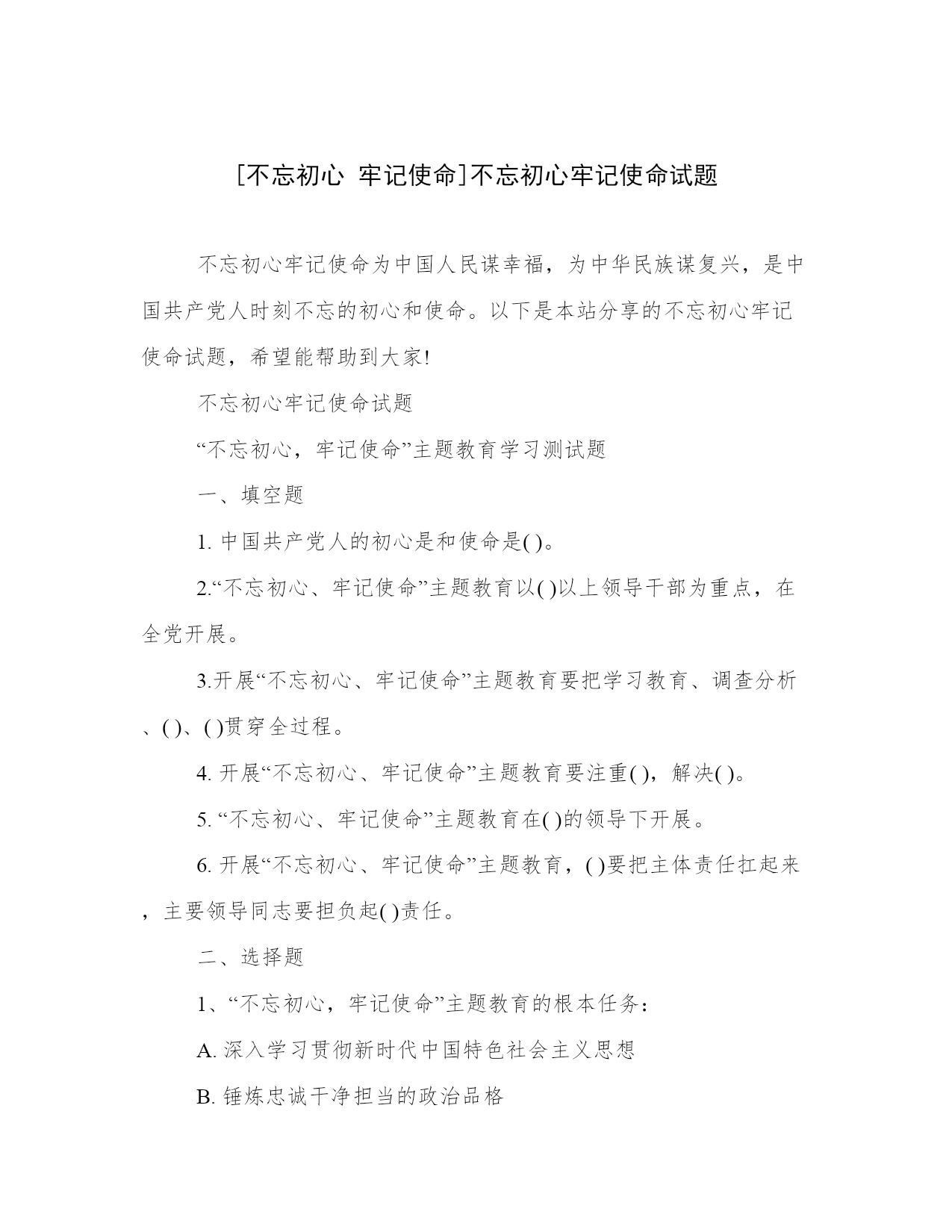 [不忘初心 牢记使命]不忘初心牢记使命试题