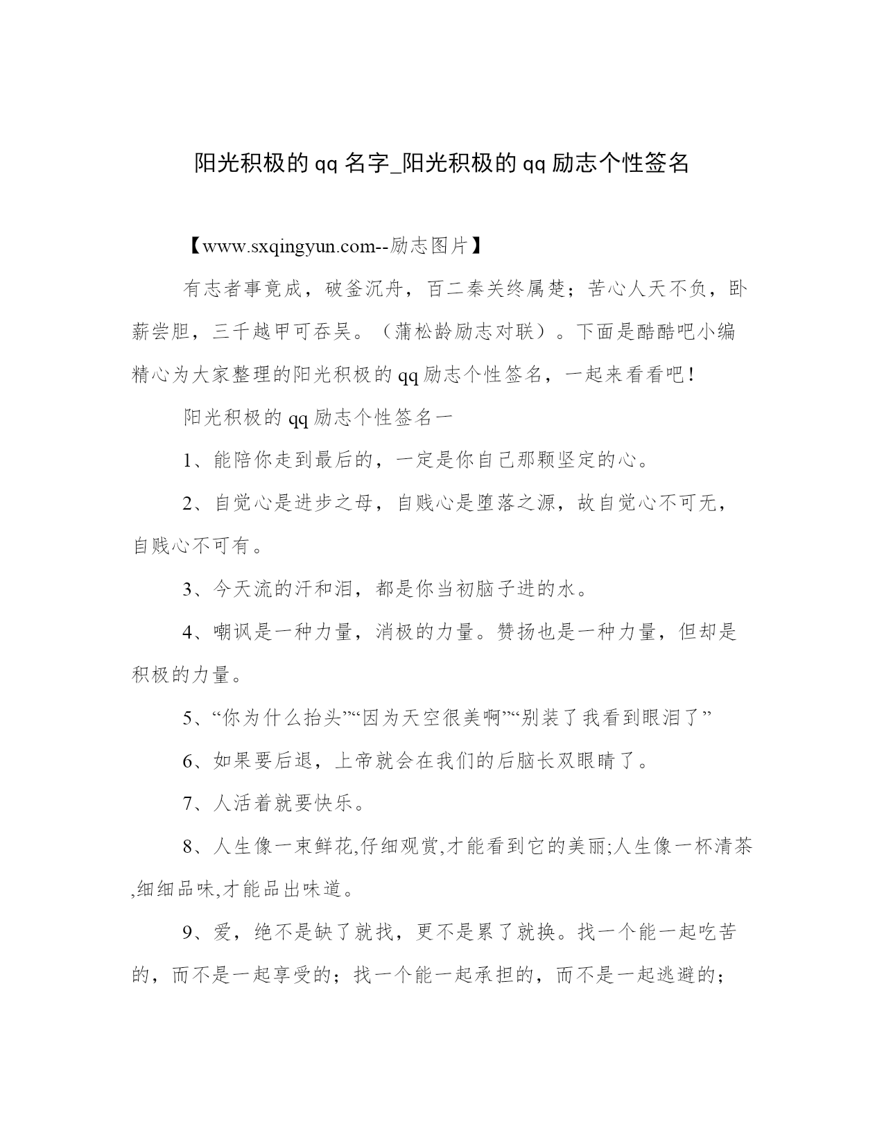 阳光积极的qq名字_阳光积极的qq励志个性签名