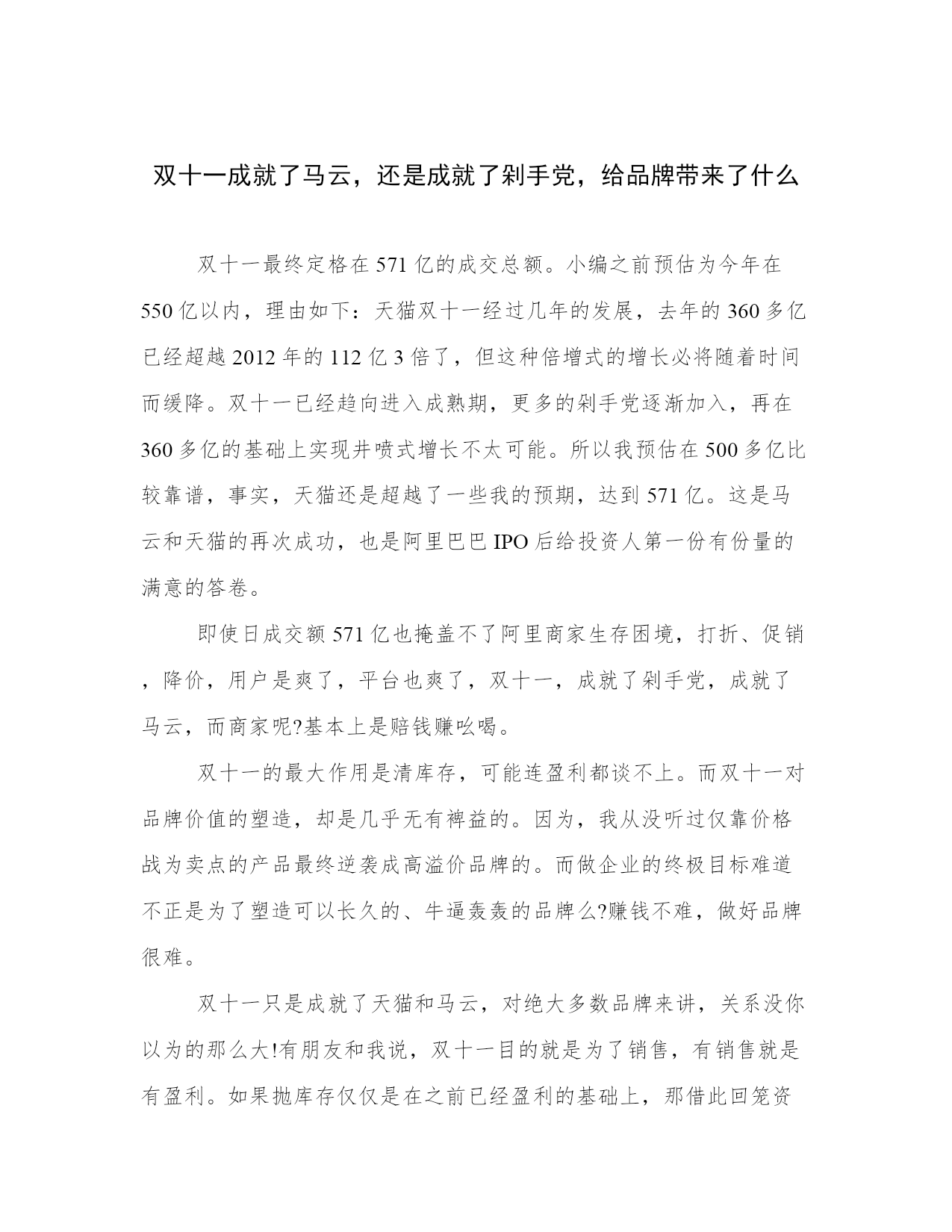 双十一成就了马云,还是成就了剁手党,给品牌带来了什么