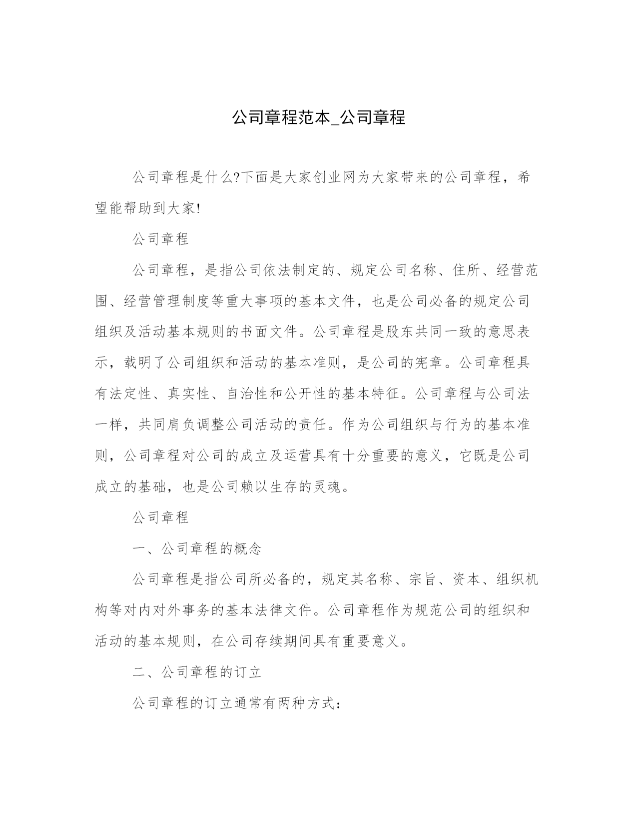 公司章程范本_公司章程