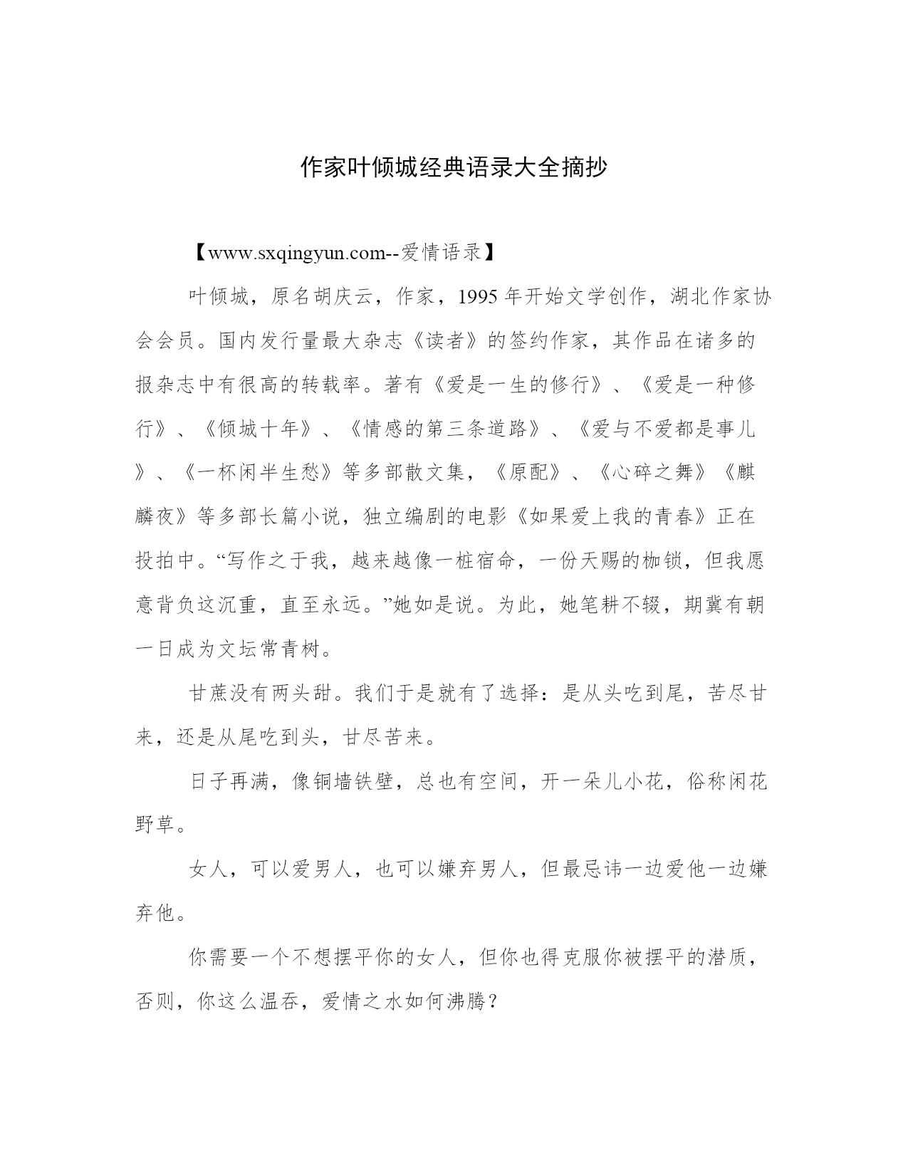 作家叶倾城经典语录大全摘抄