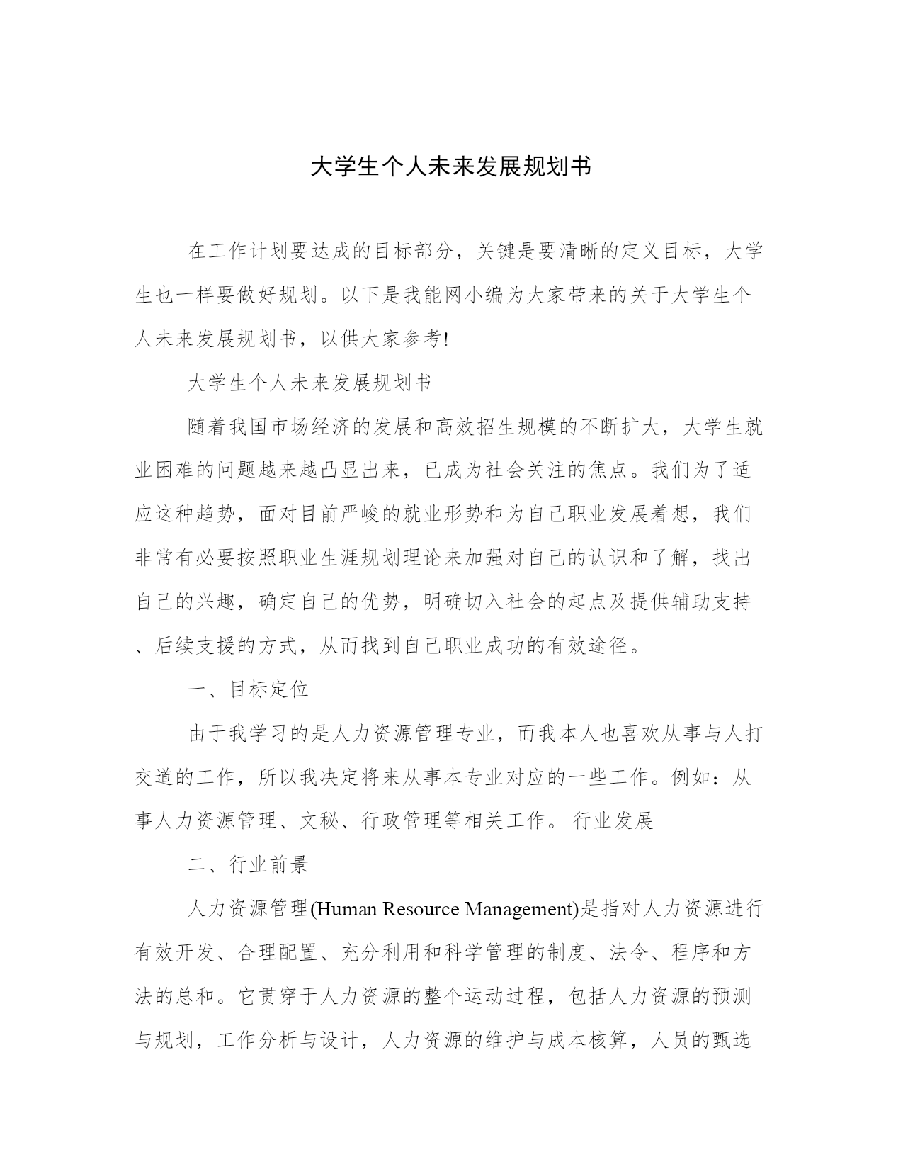 大学生个人未来发展规划书