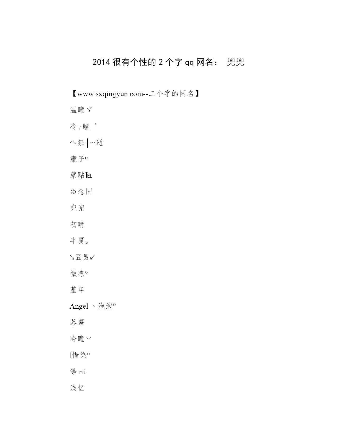 2014很有个性的2个字qq网名: 兜兜