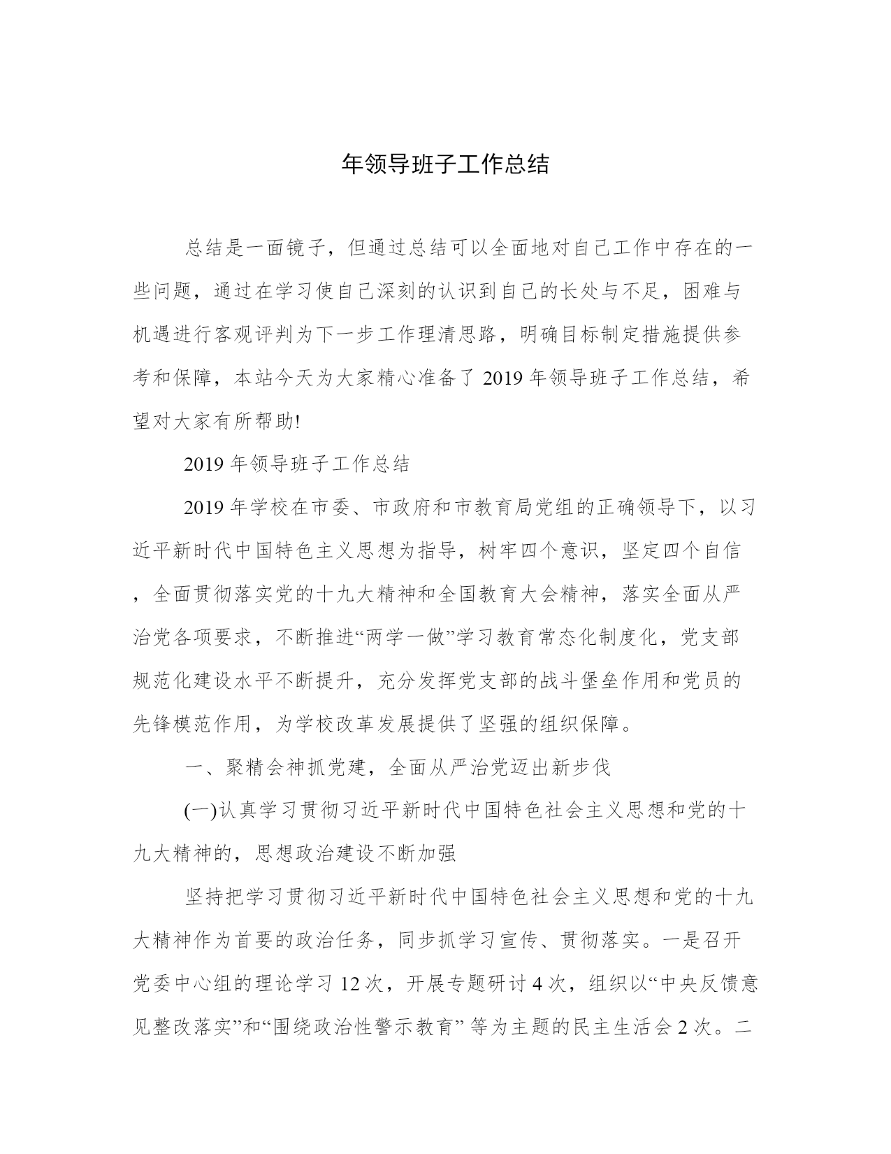 年领导班子工作总结