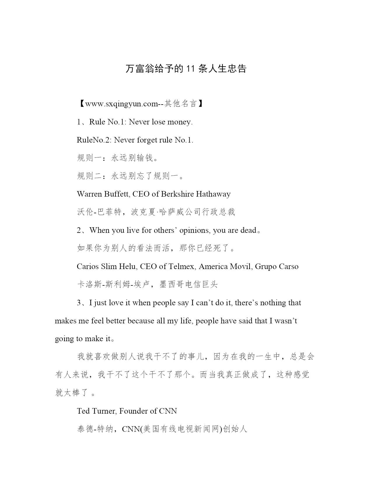 万富翁给予的11条人生忠告