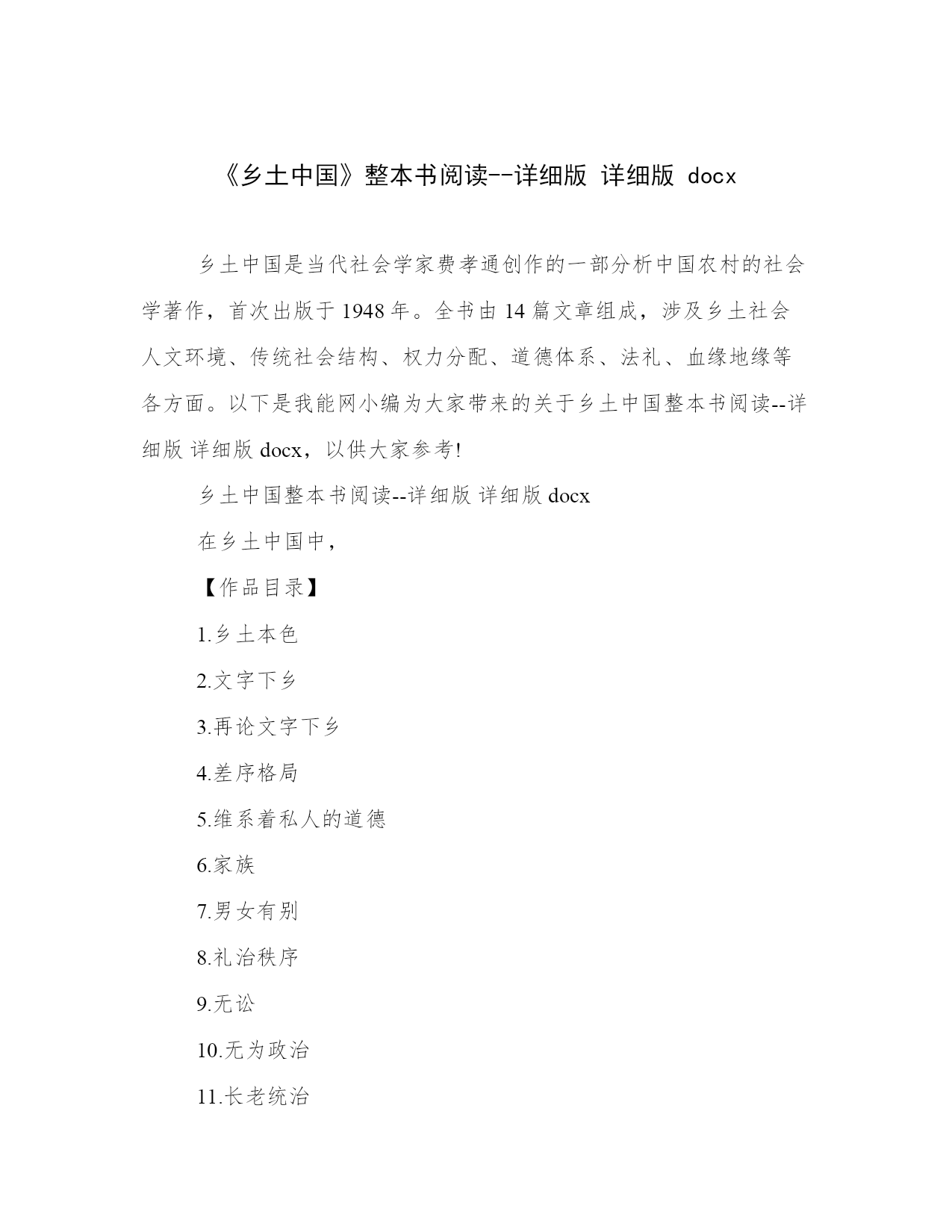 《乡土中国》整本书阅读--详细版 详细版 docx