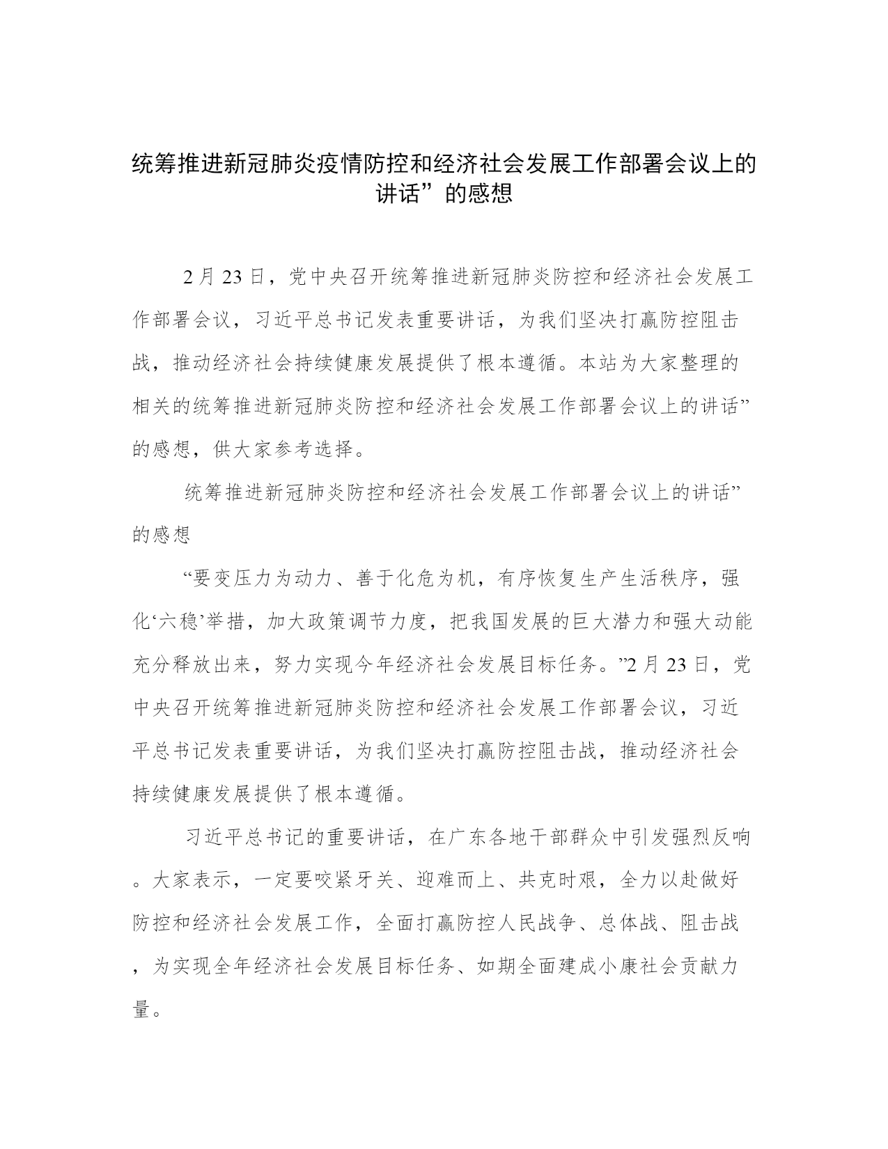 统筹推进新冠肺炎疫情防控和经济社会发展工作部署会议上的讲话”的感想