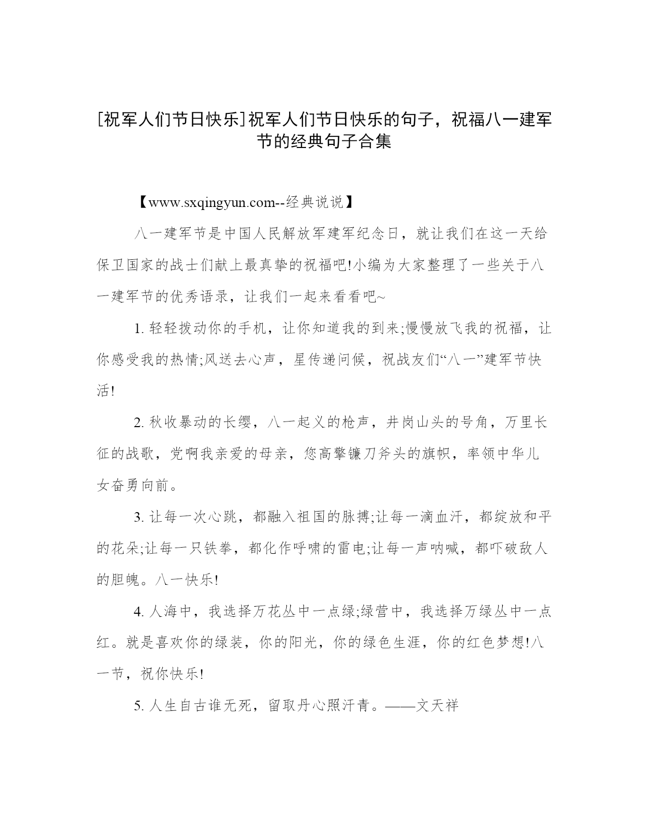 [祝军人们节日快乐]祝军人们节日快乐的句子,祝福八一建军节的经典句子合集