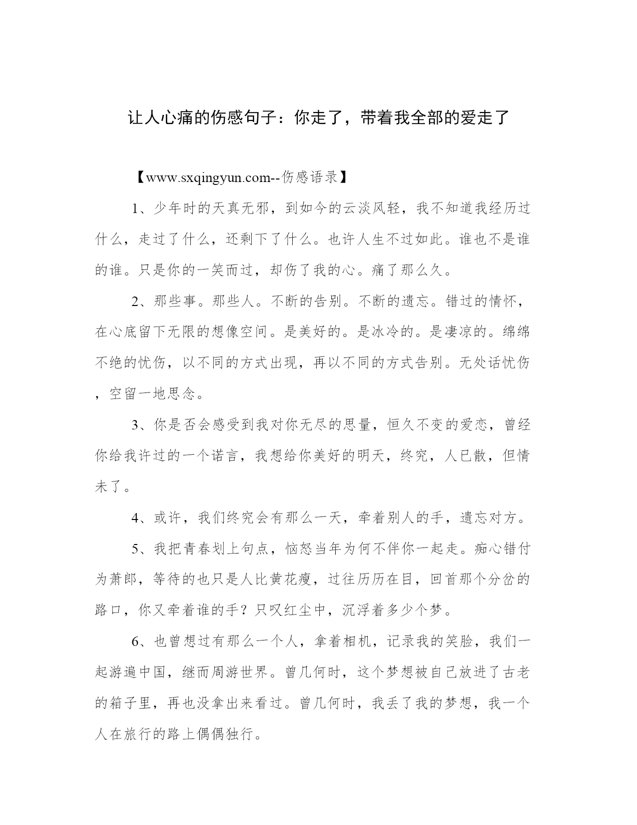 让人心痛的伤感句子:你走了,带着我全部的爱走了