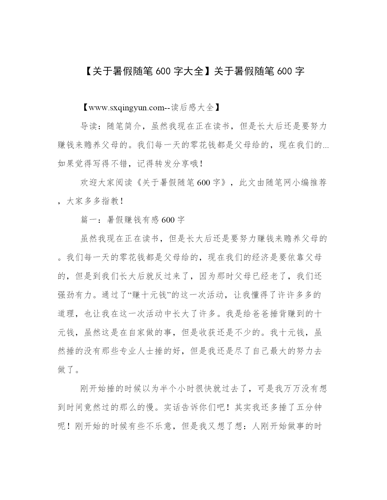 【关于暑假随笔600字大全】关于暑假随笔600字