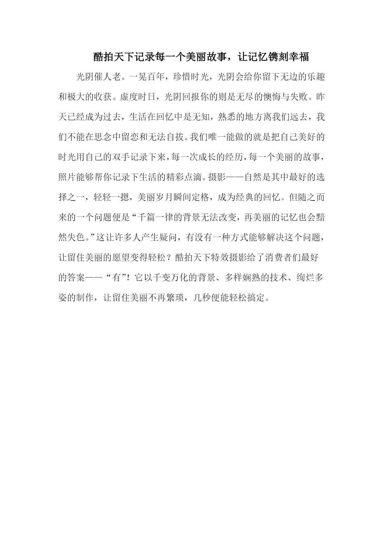 酷拍天下记录每一个美丽故事,让记忆镌刻幸福