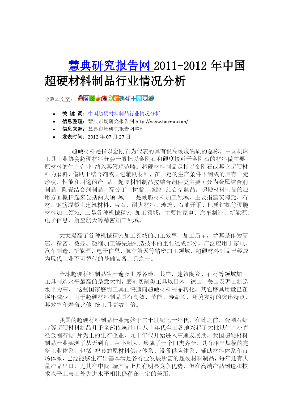 [宝典]2011-2012年中国超硬资料成品行业情况剖析