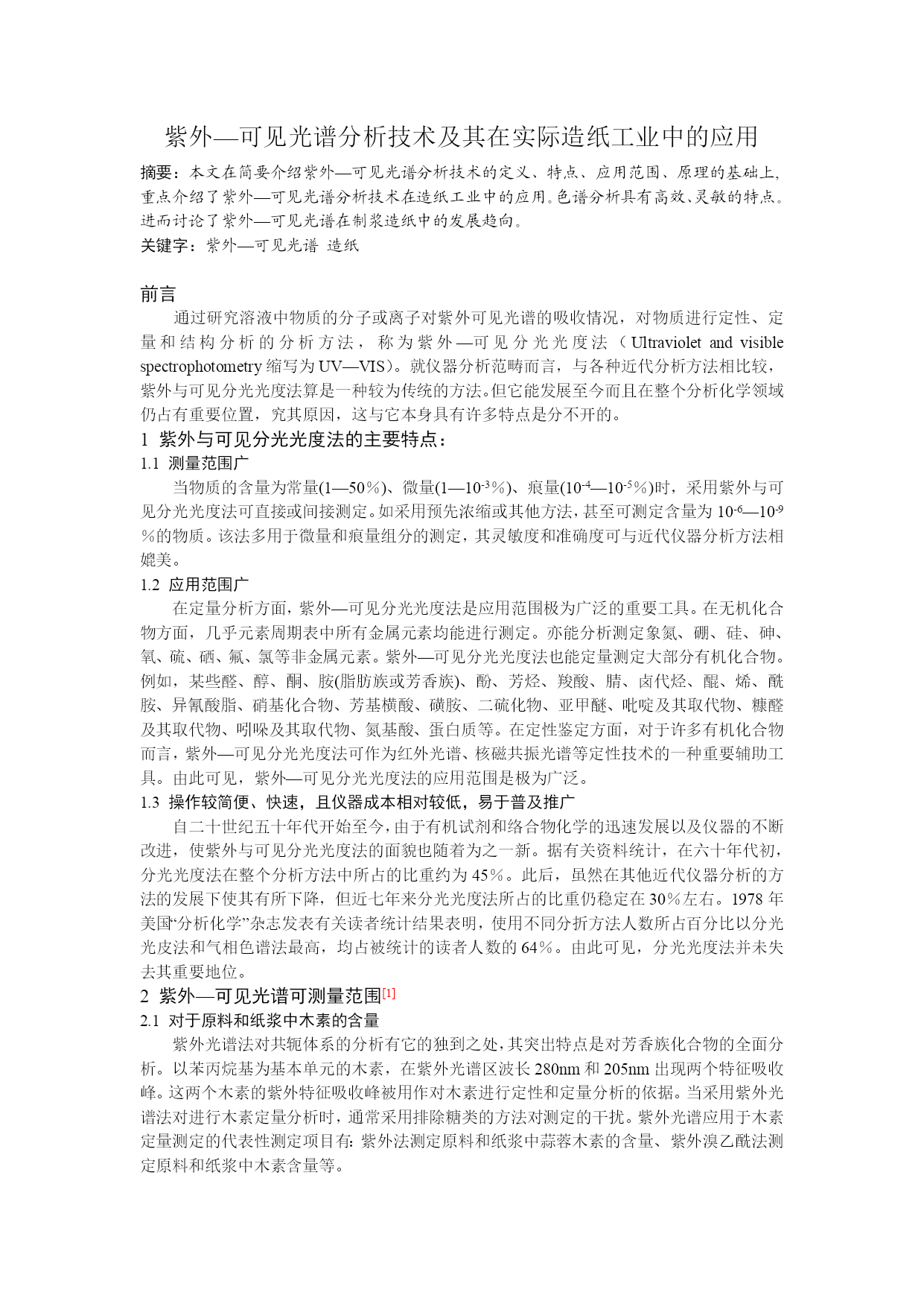 紫外可见光谱技术及其在实际造纸工业中的应用
