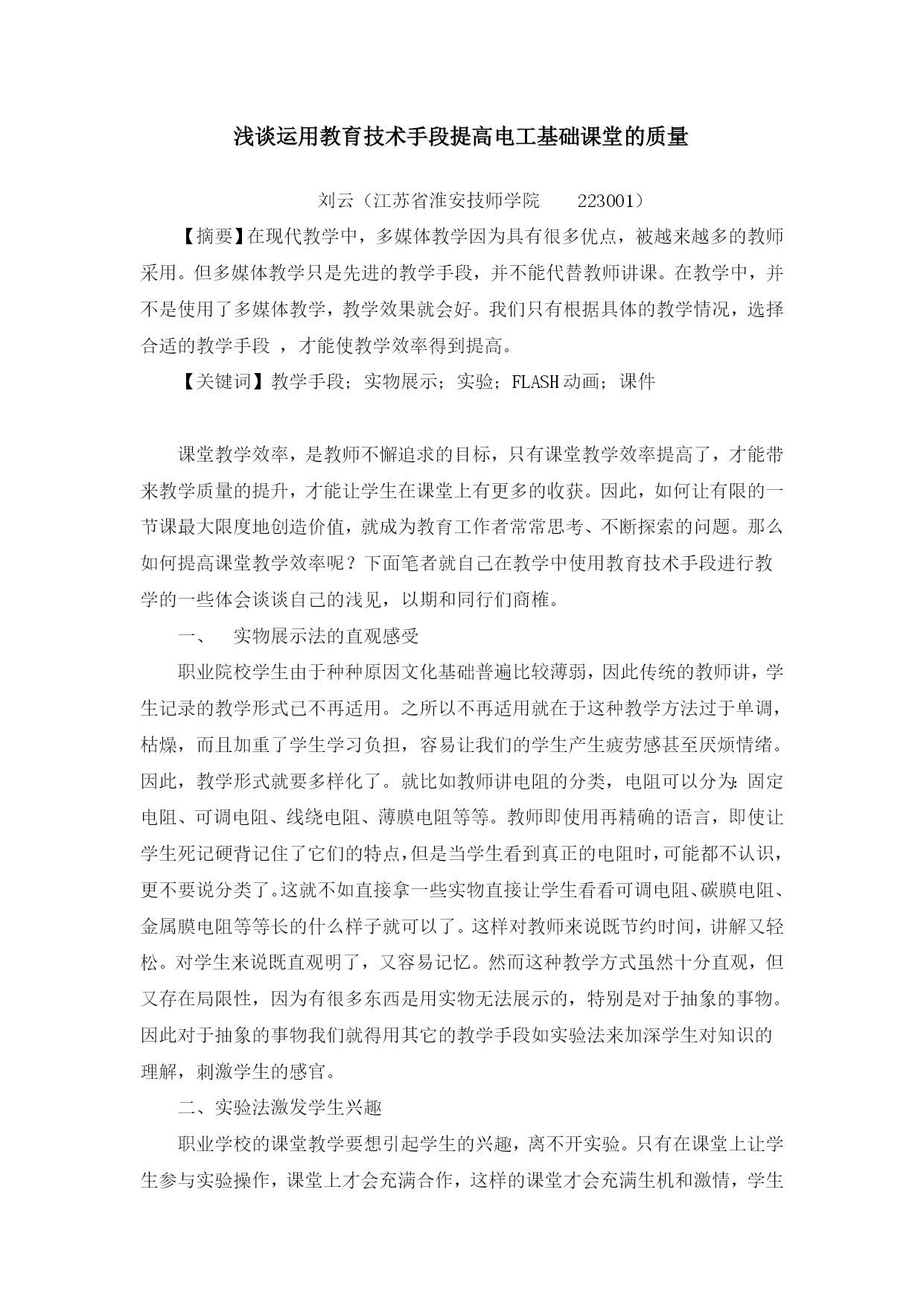浅谈运用教育技术手段提高电工基础课堂的质量