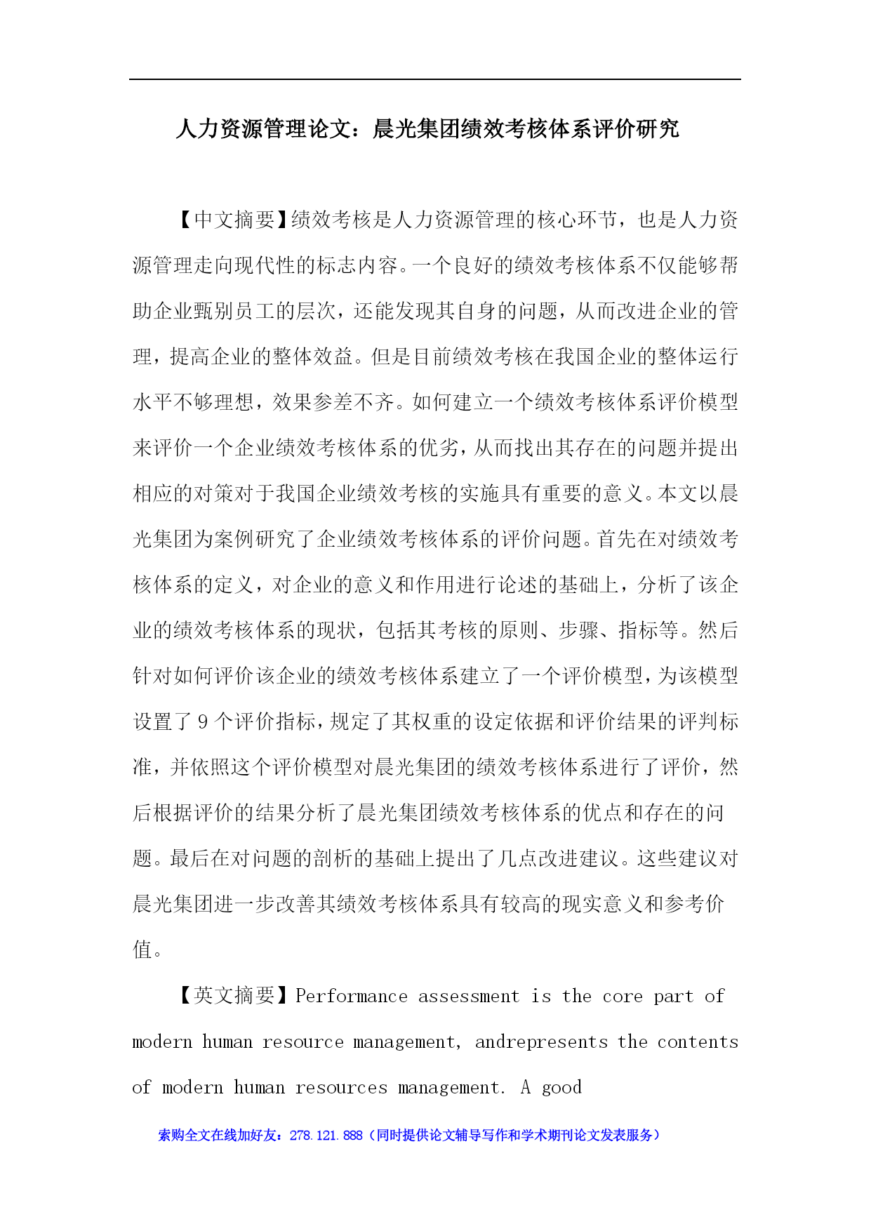 人力资源管理论文:晨光集团绩效考核体系评价研究