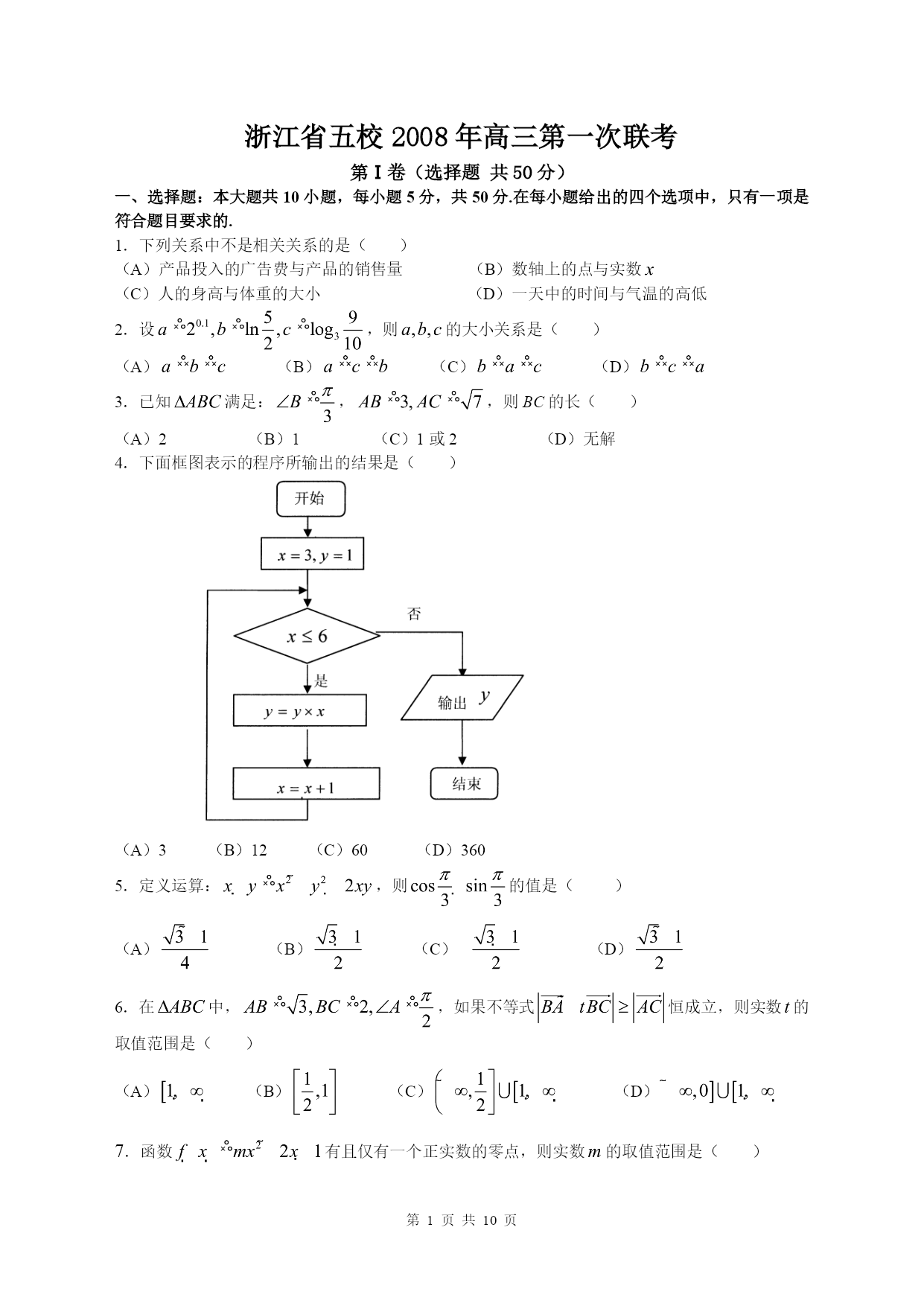 浙江省五校2009届高三第一次联考数学(理科)试题1