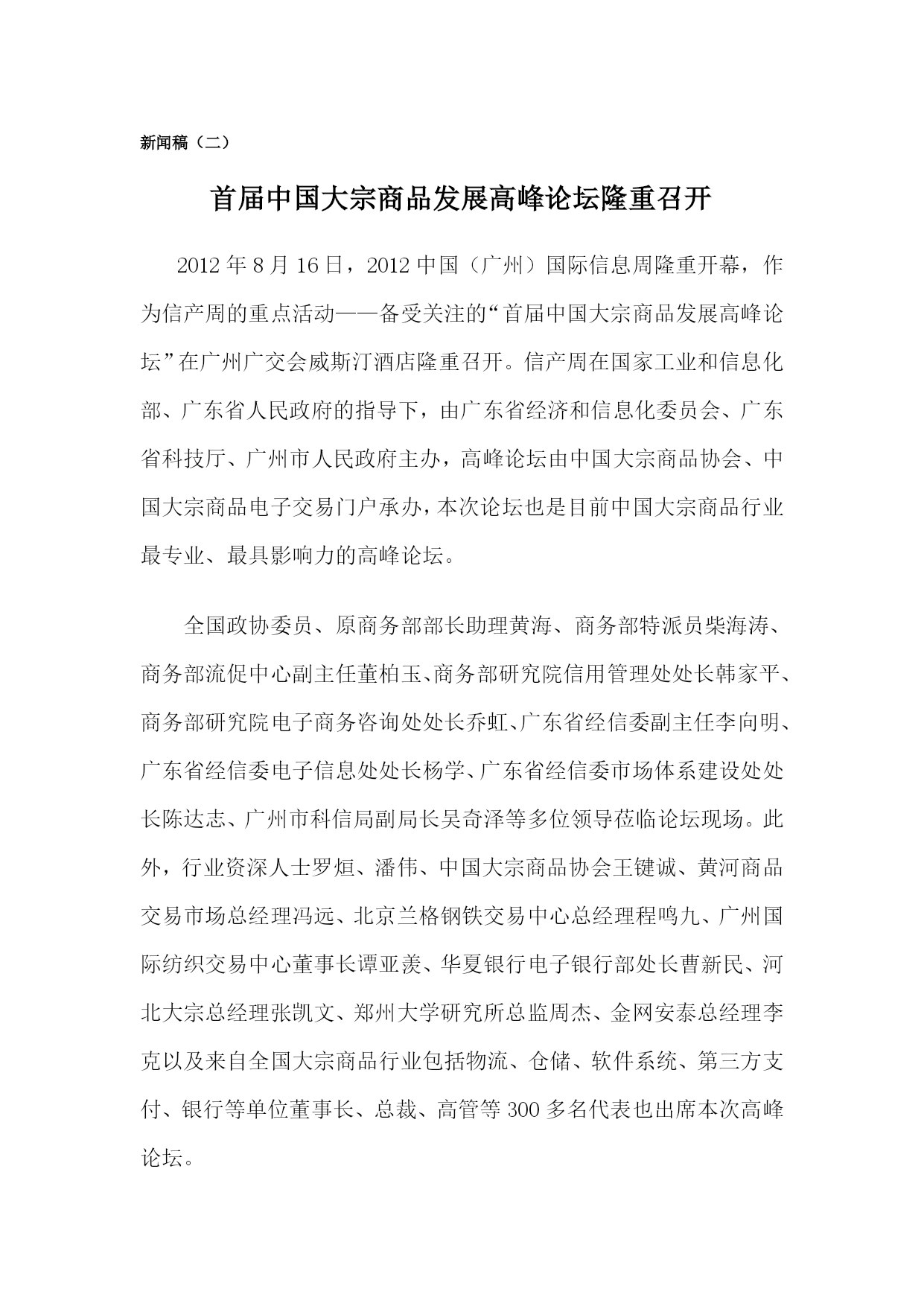 首届中国大宗商品发展高峰论坛隆重召开