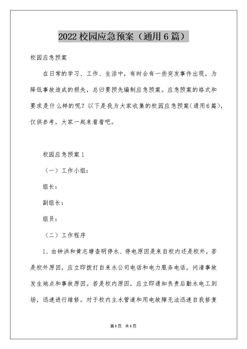 2022校园应急预案(通用6篇)