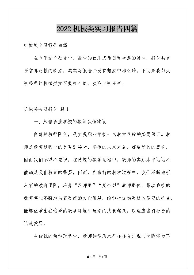 2022机械类实习报告四篇