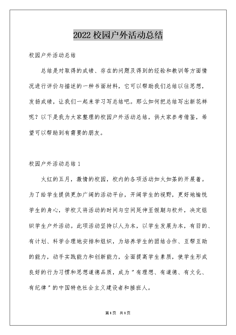 2022校园户外活动总结