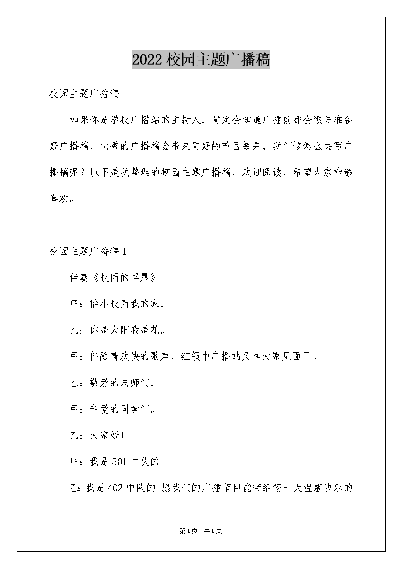 2022校园主题广播稿