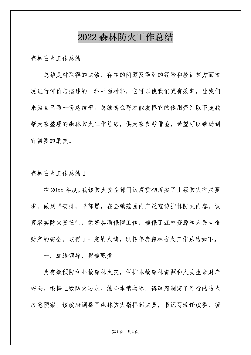 2022森林防火工作总结
