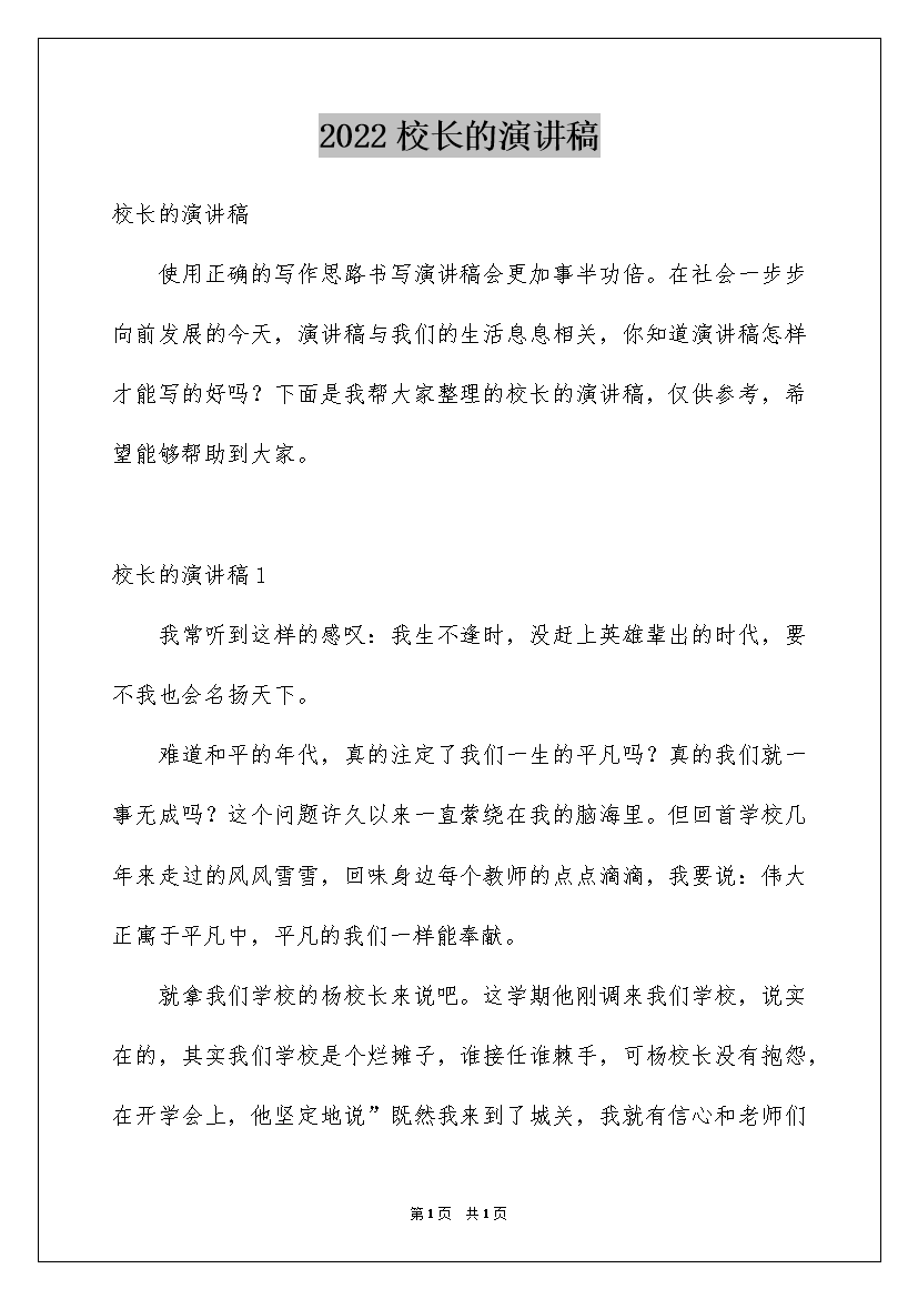 2022校长的演讲稿
