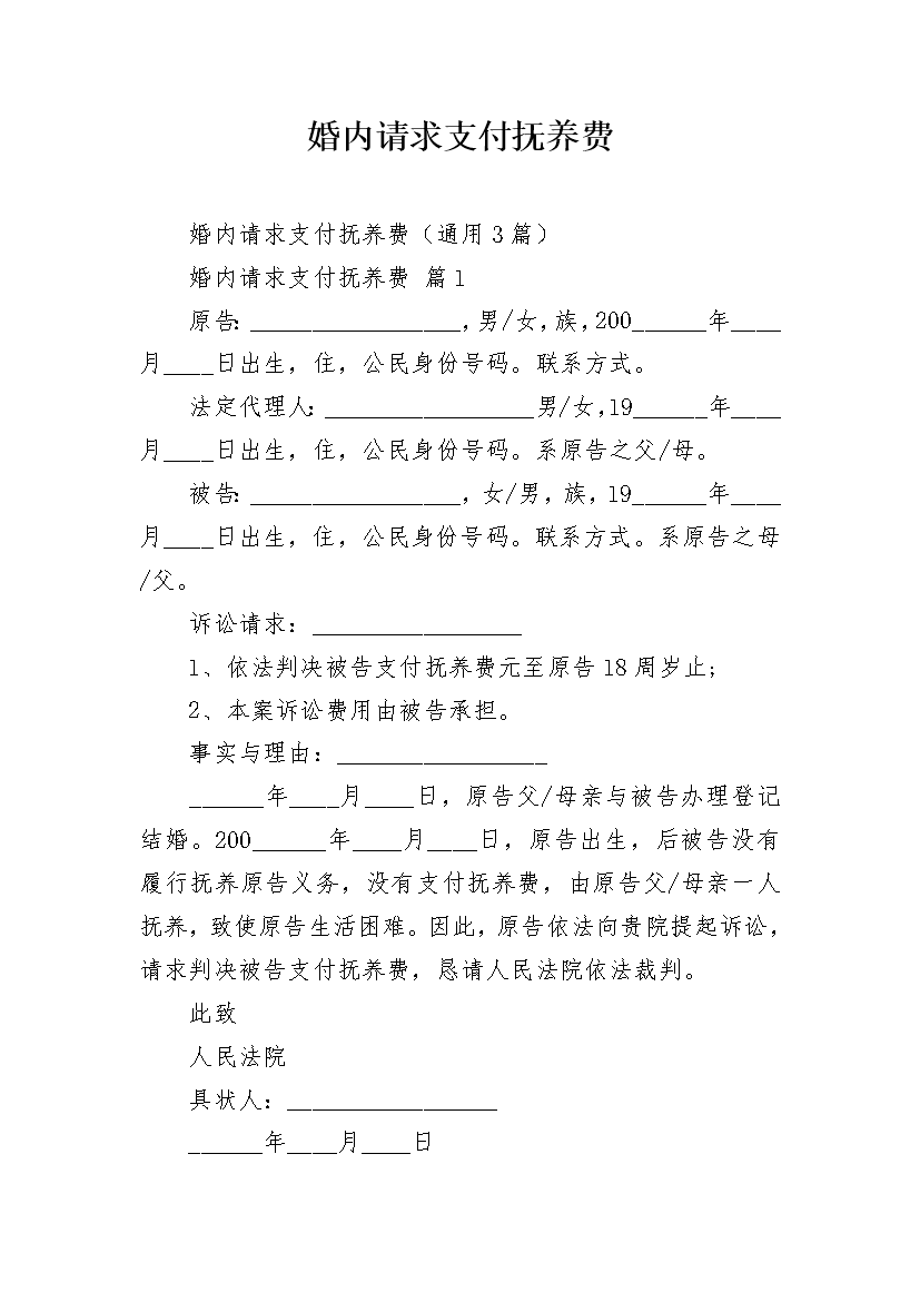 婚内请求支付抚养费