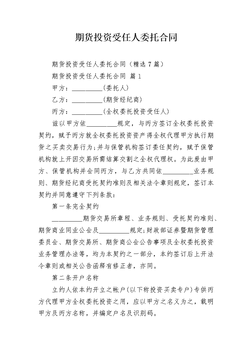 期货投资受任人委托合同