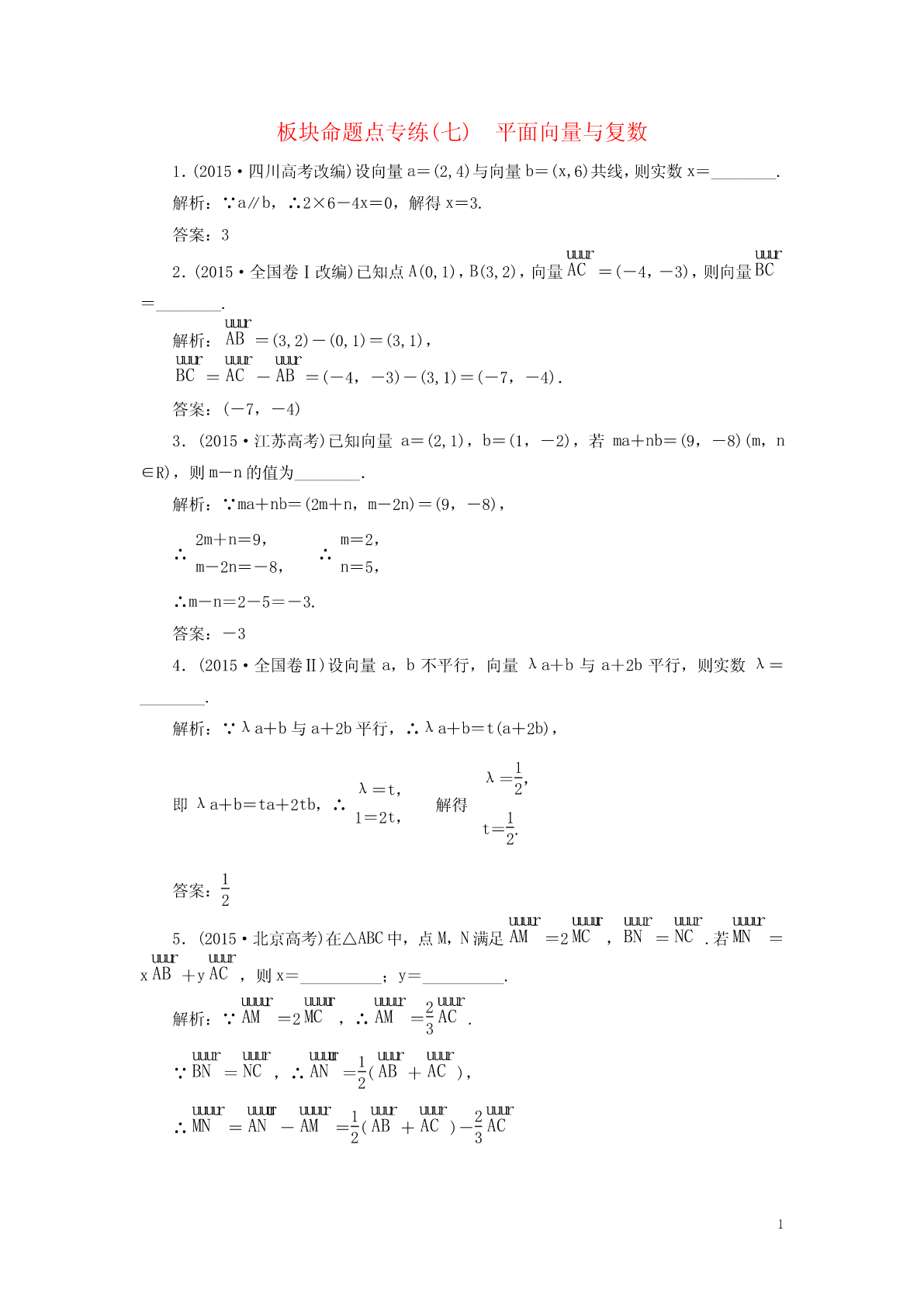 届高三数学一轮总复习板块命题点专练(七)平面向量与复数理