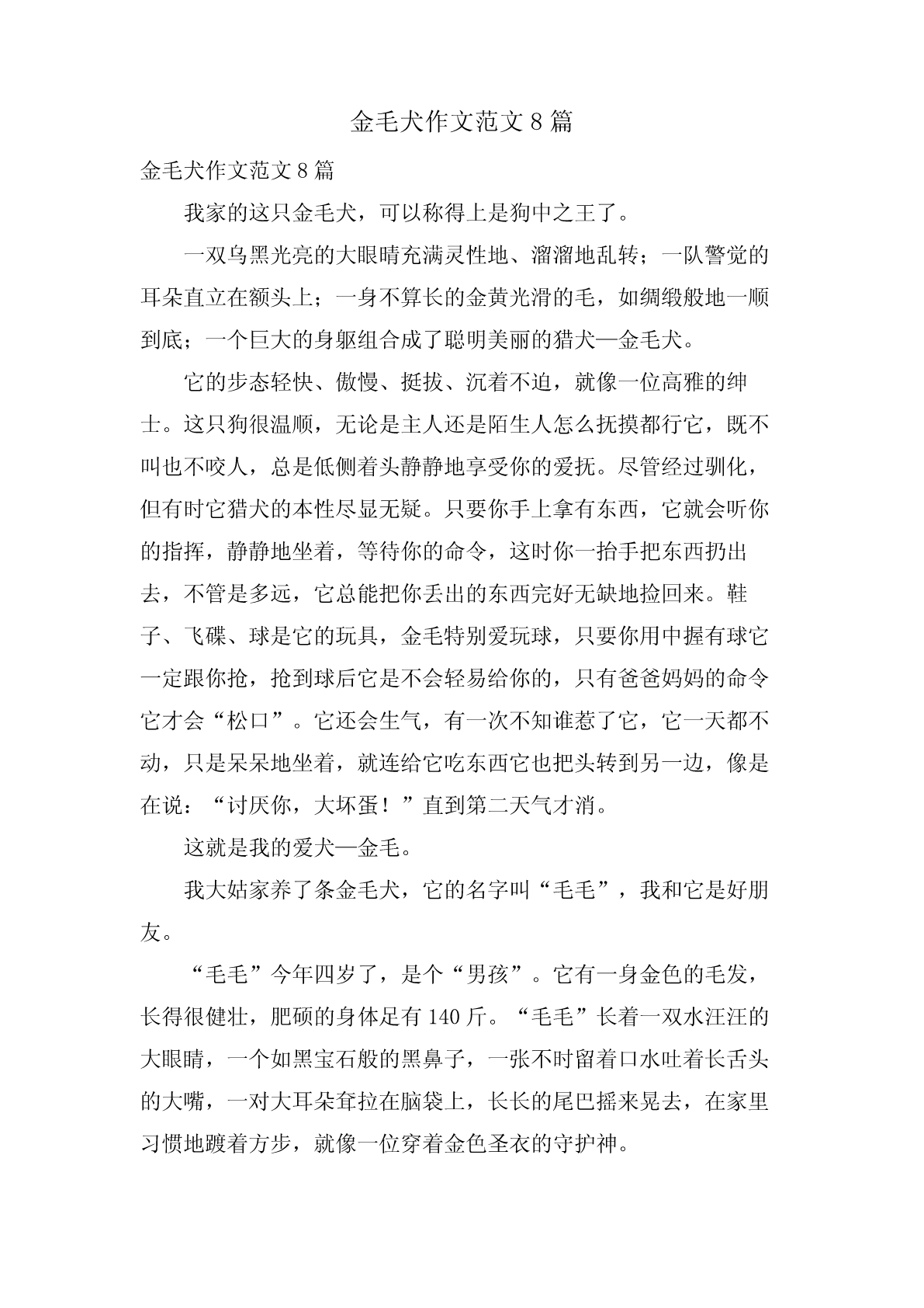 金毛犬作文范文8篇