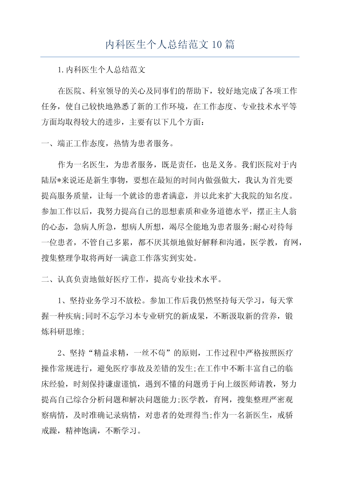 内科医生个人总结范文10篇