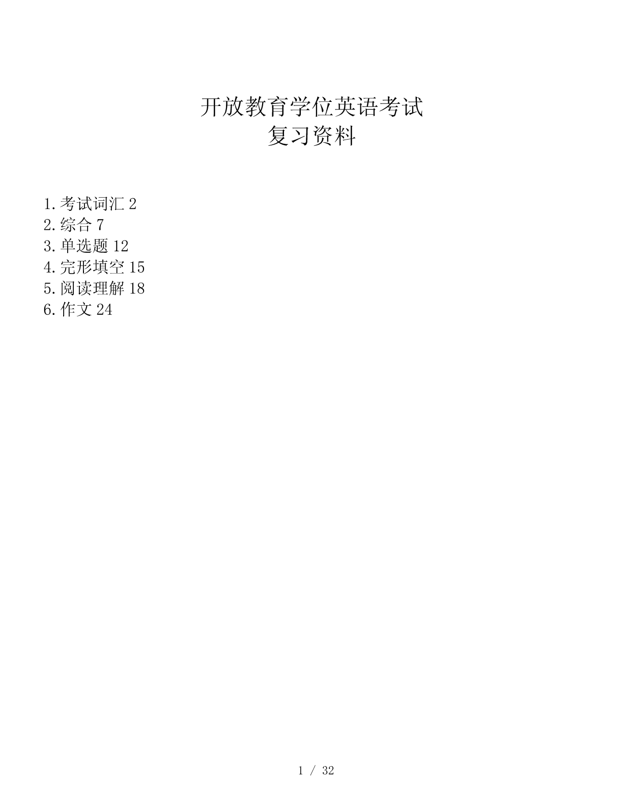 开放教育学位英语考试复习资料