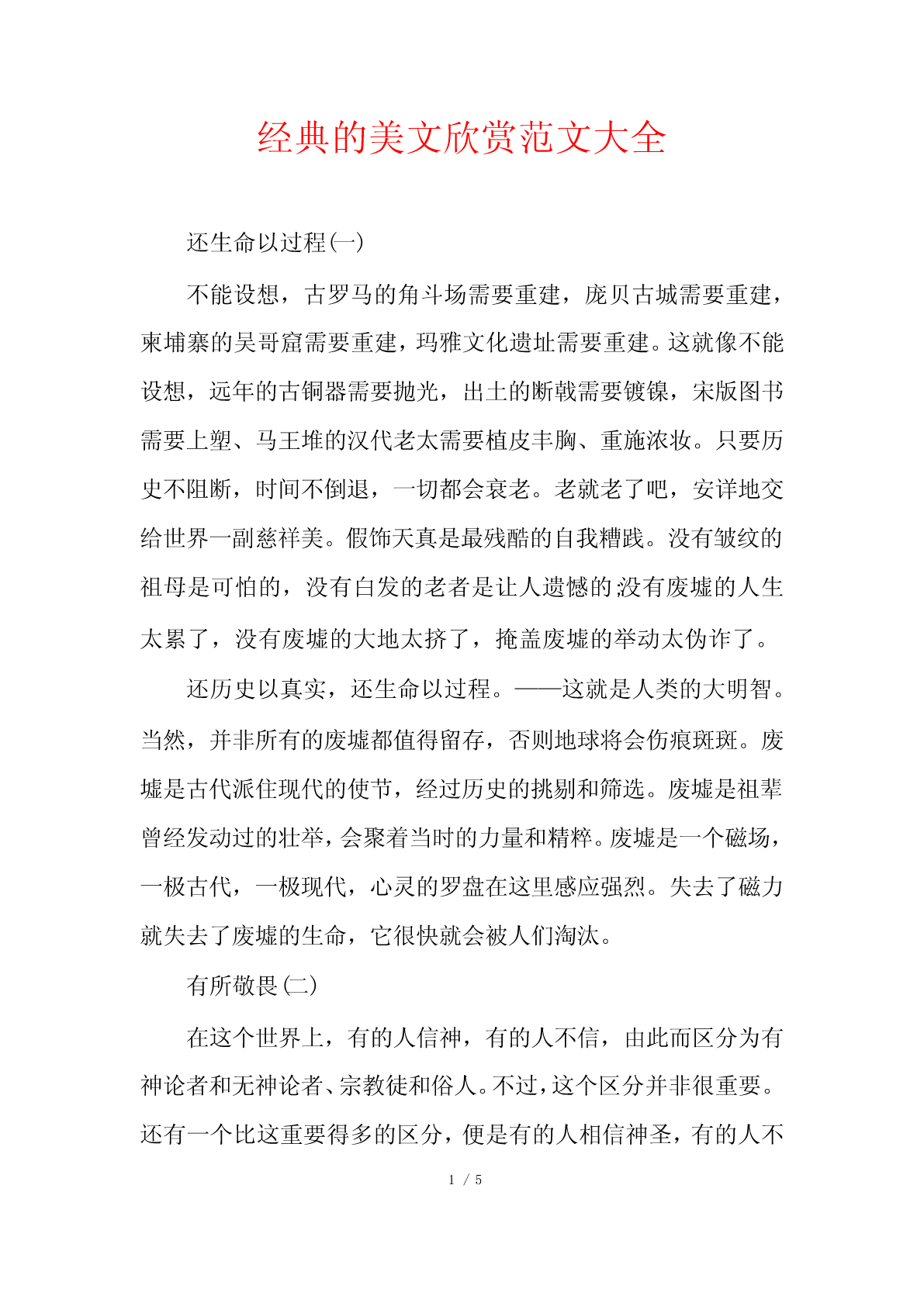 经典的美文欣赏范文大全