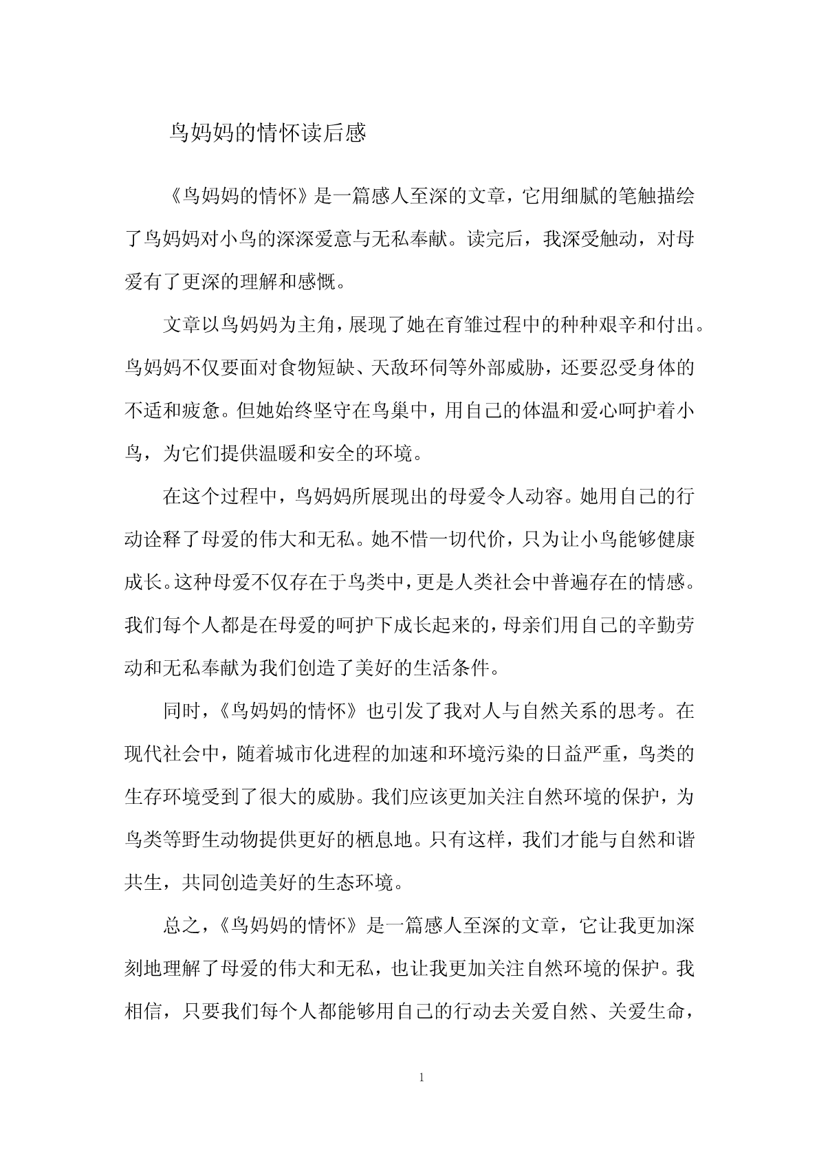 鸟妈妈的情怀读后感